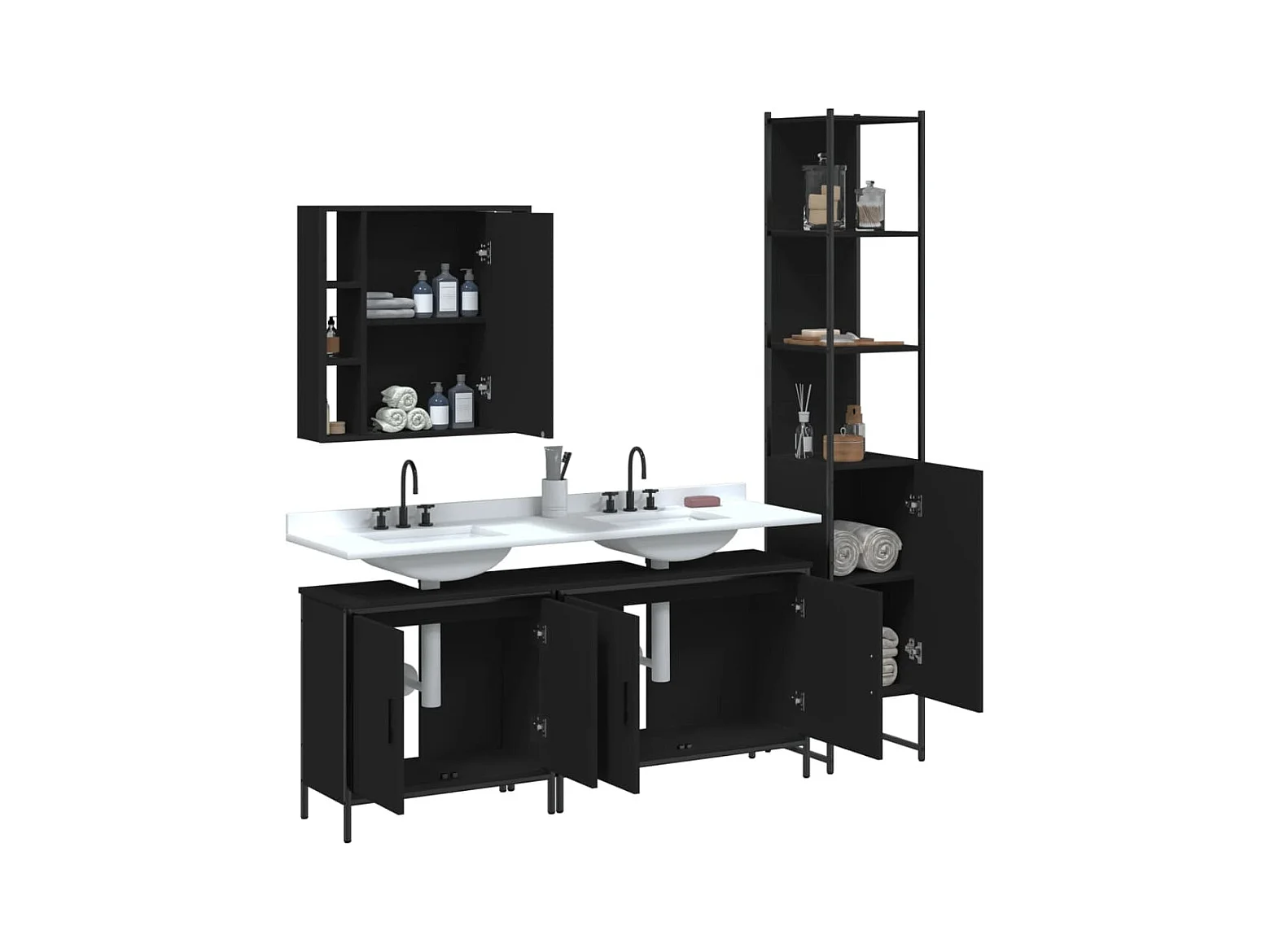 4-delige badkamermeubelset zwart bewerkt hout