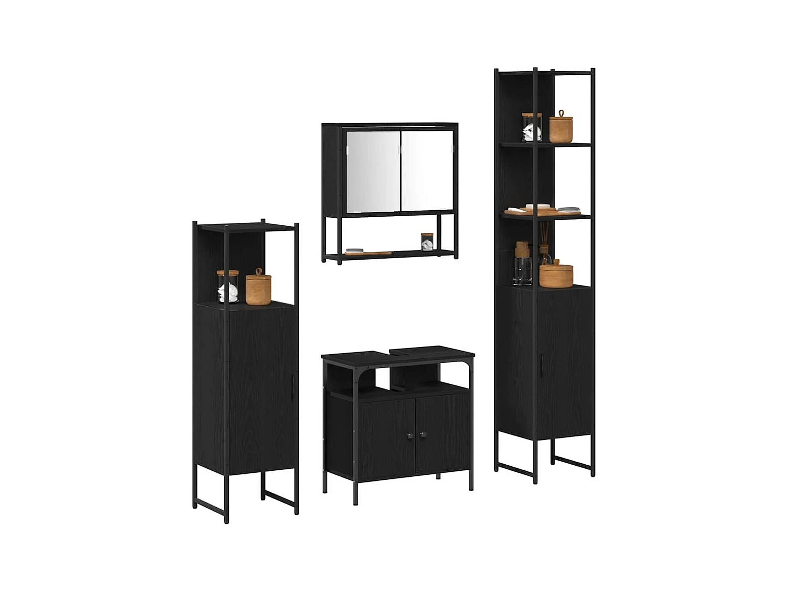 Badkamermeubelset met opbergruimte 4-delig Zwart