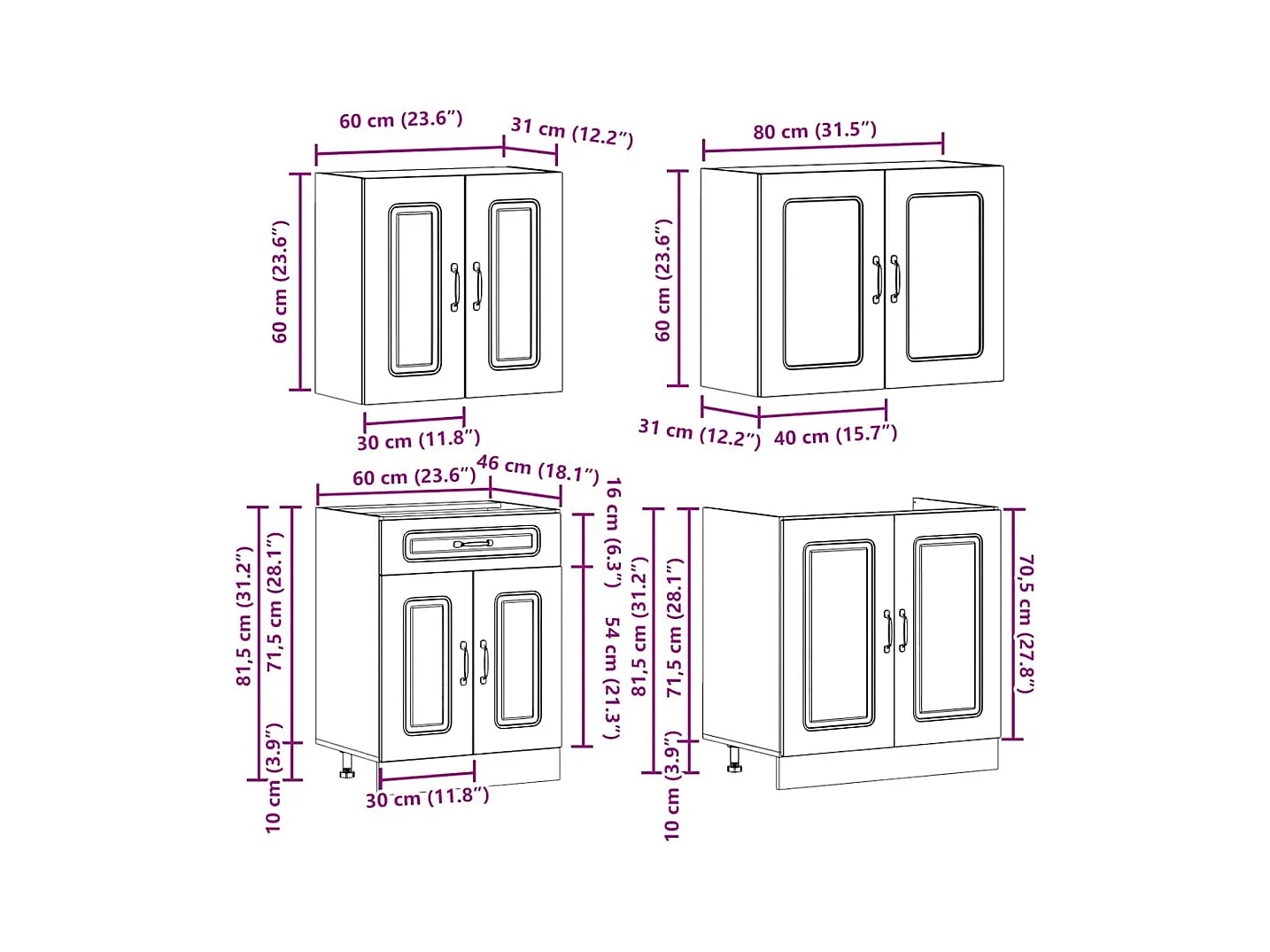 7-delige Keukenkastenset Kalmar bewerkt hout gerookt eiken