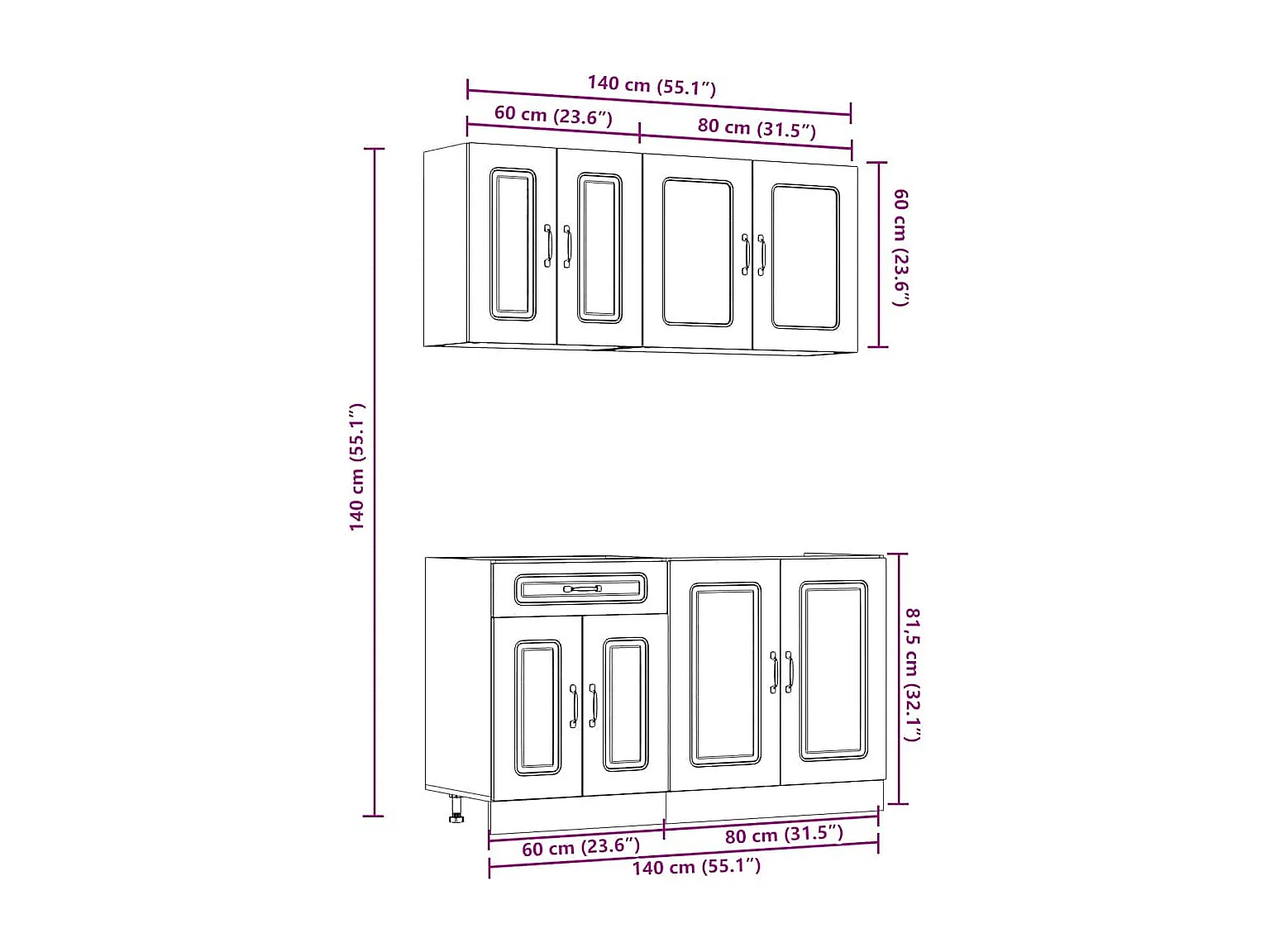 4-delige Keukenkastenset Kalmar bewerkt hout bruin eikenkleur
