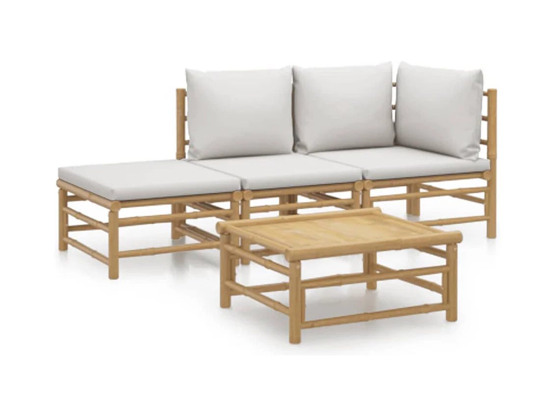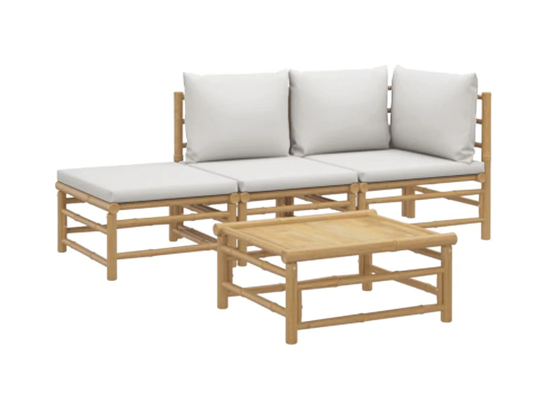 4-delige Loungeset met kussens bamboe lichtgrijs