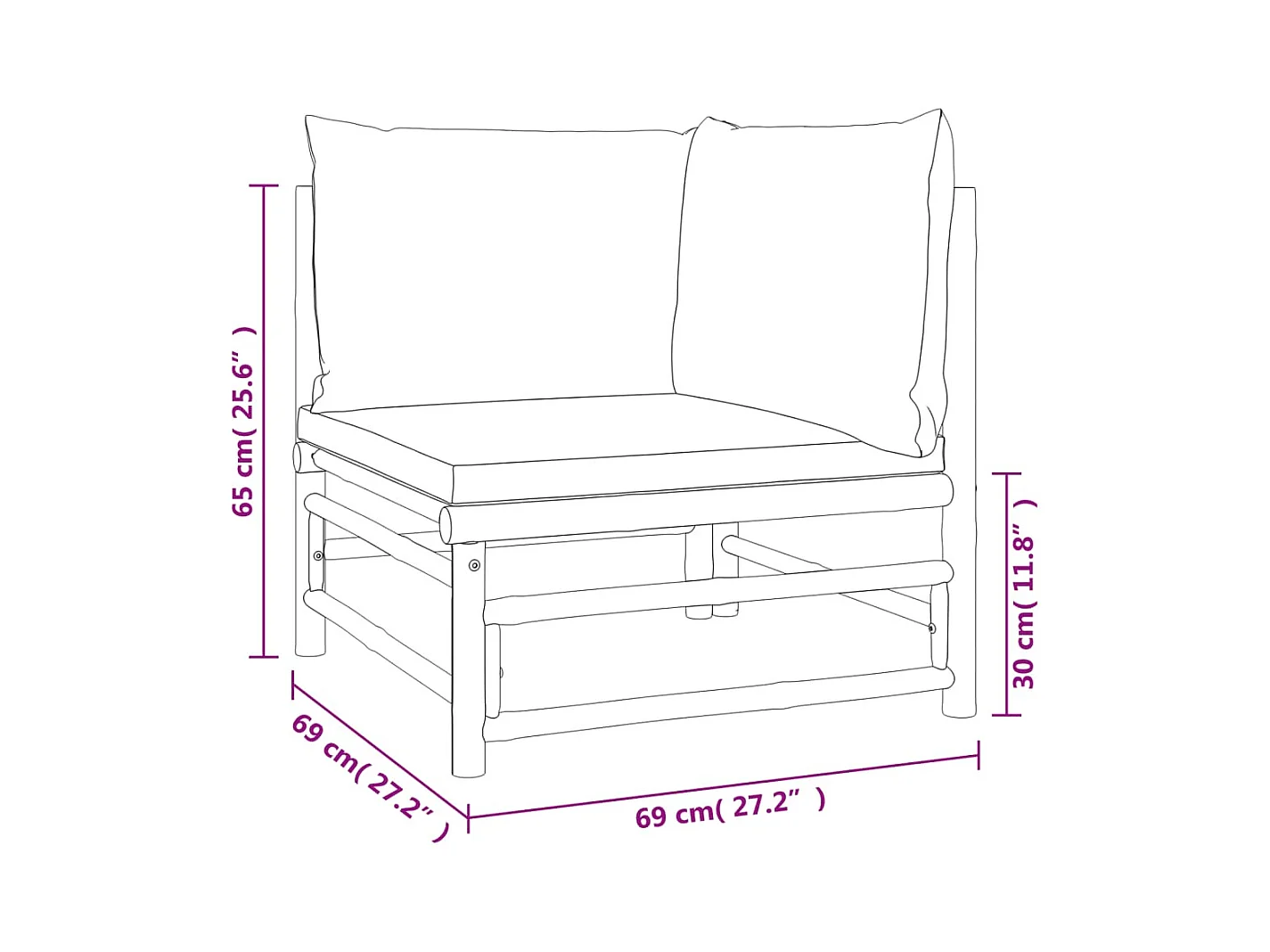 4-delige Loungeset met kussens bamboe donkergrijs