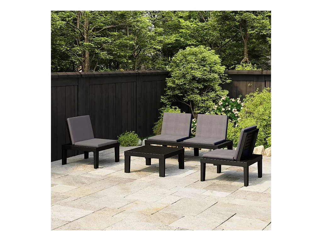 4-delige Loungeset met kussens kunststof grijs NL84884
