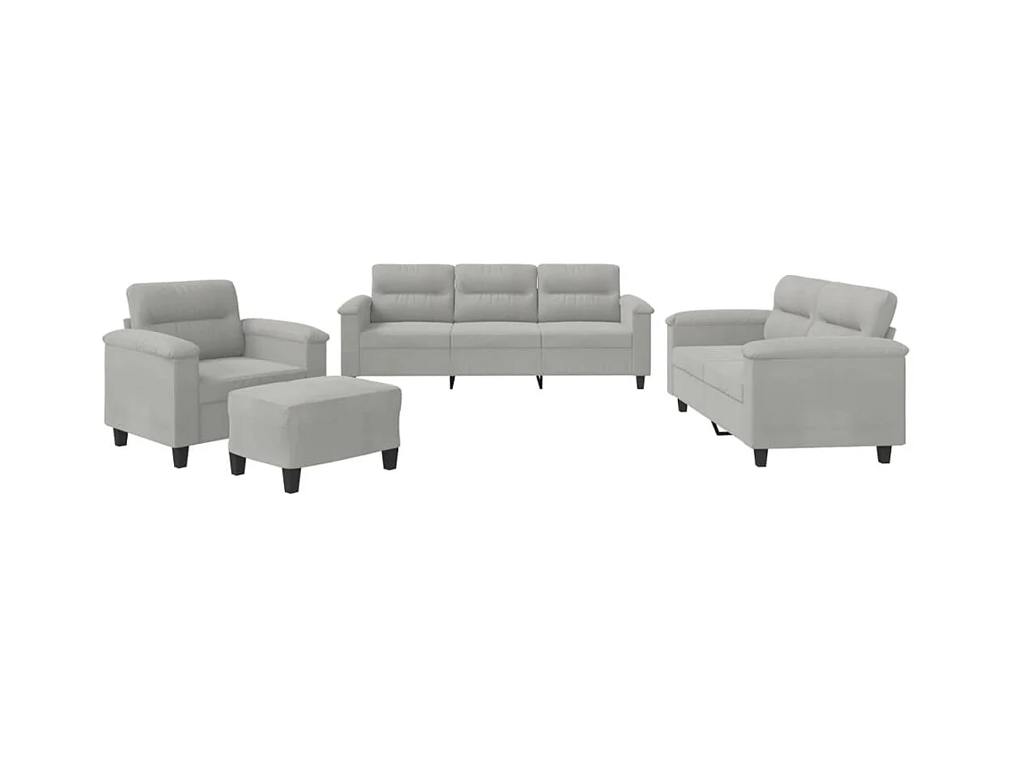 4-delige Loungeset met kussens microvezelstof lichtgrijs