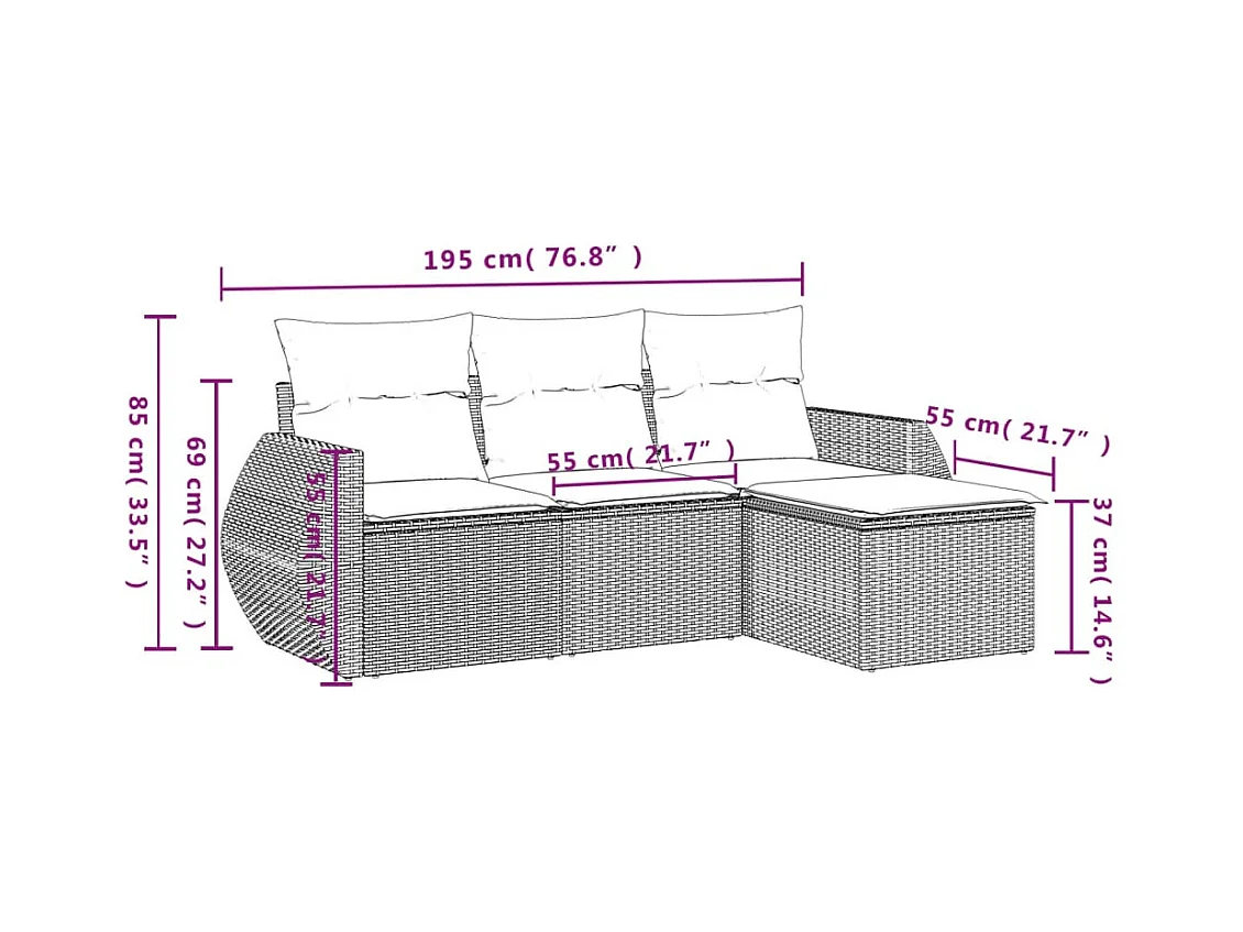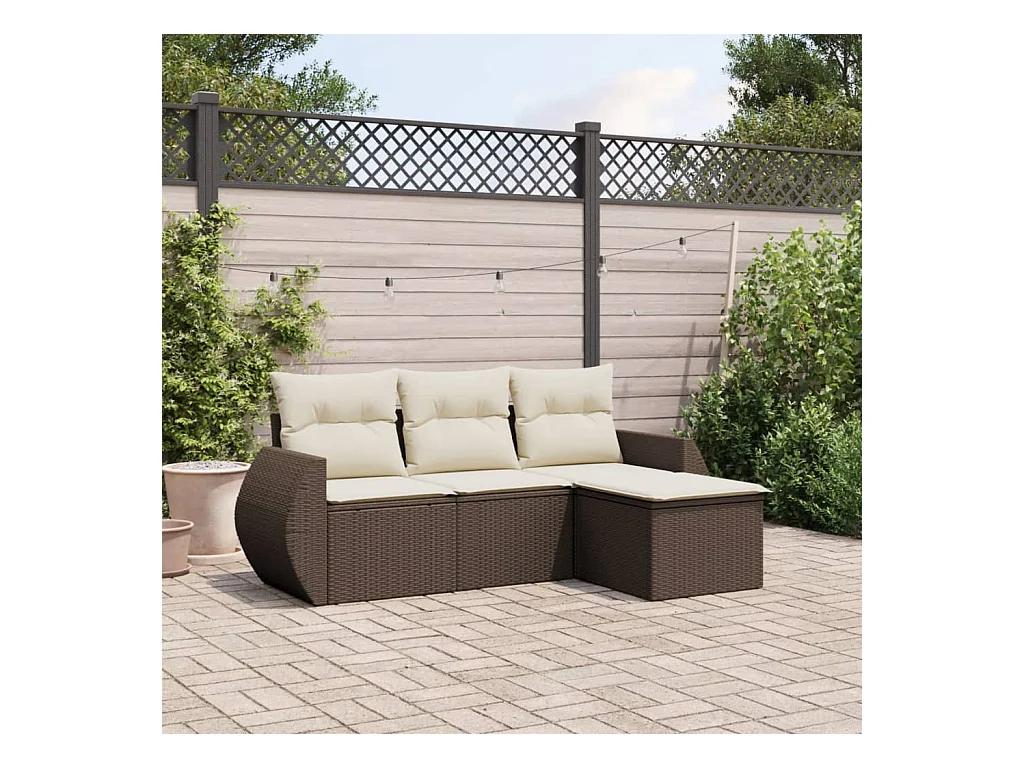 4-delige Loungeset met kussens poly rattan bruin