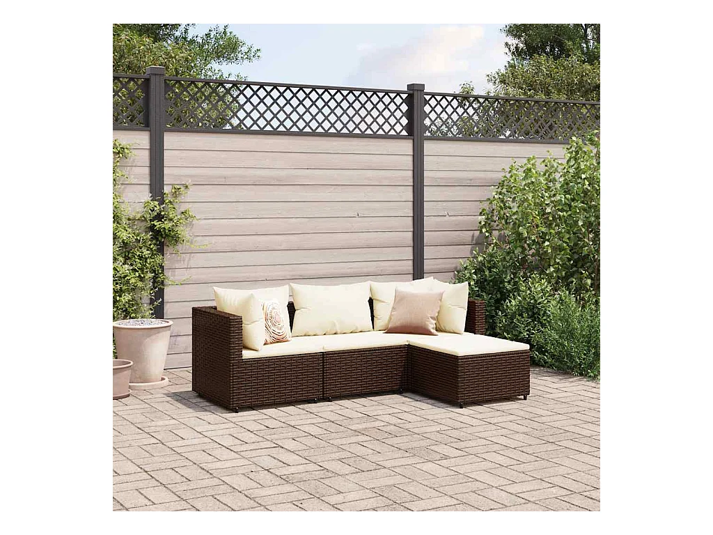 4-delige Loungeset met kussens poly rattan bruin