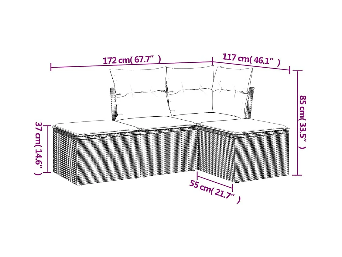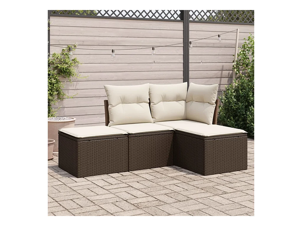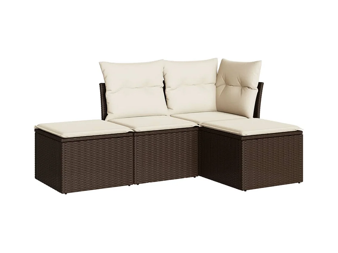 4-delige Loungeset met kussens poly rattan bruin BE699671