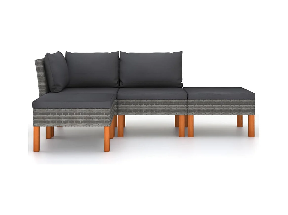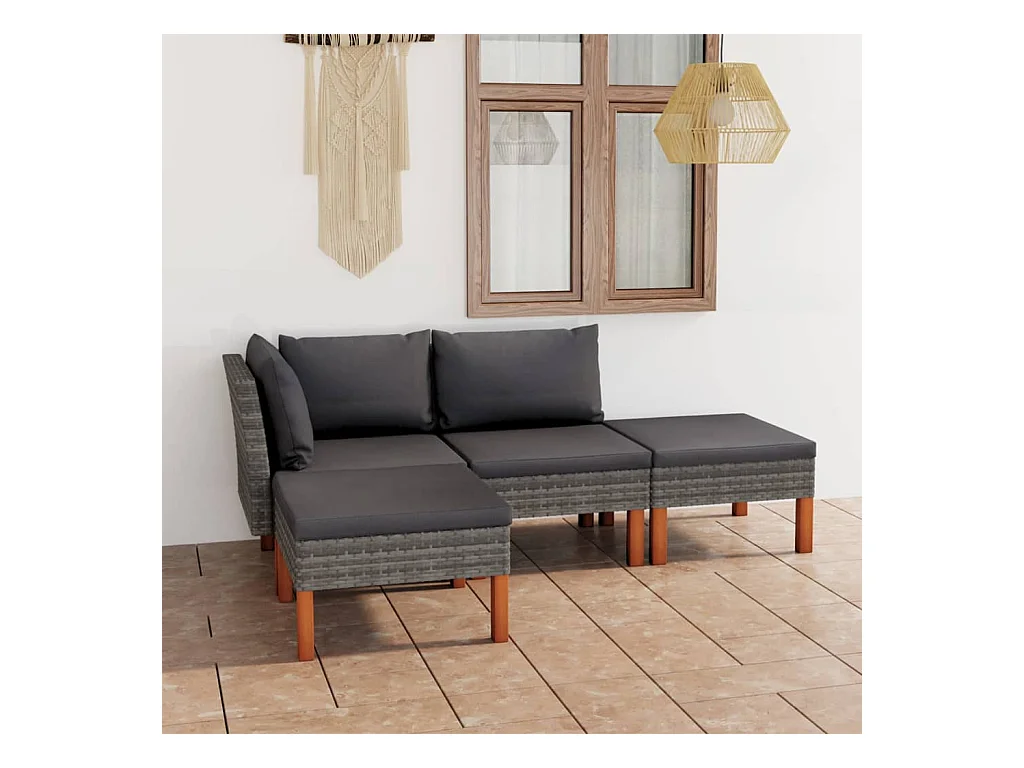 4-delige Loungeset met kussens poly rattan grijs NL45849