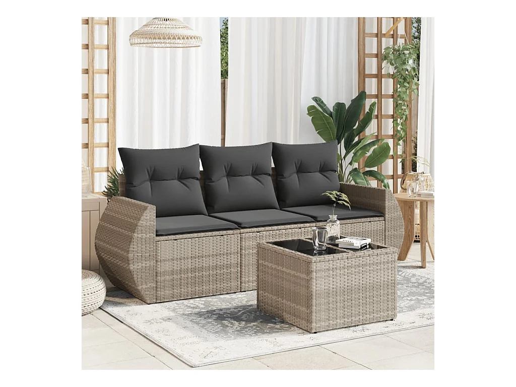 4-delige Loungeset met kussens poly rattan grijs NL53524