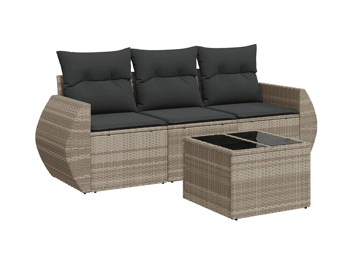 4-delige Loungeset met kussens poly rattan lichtgrijs