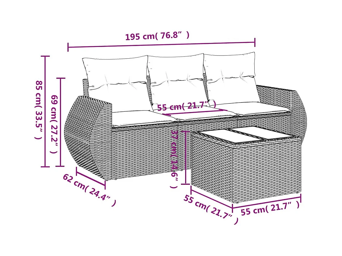4-delige Loungeset met kussens poly rattan grijs NL75375