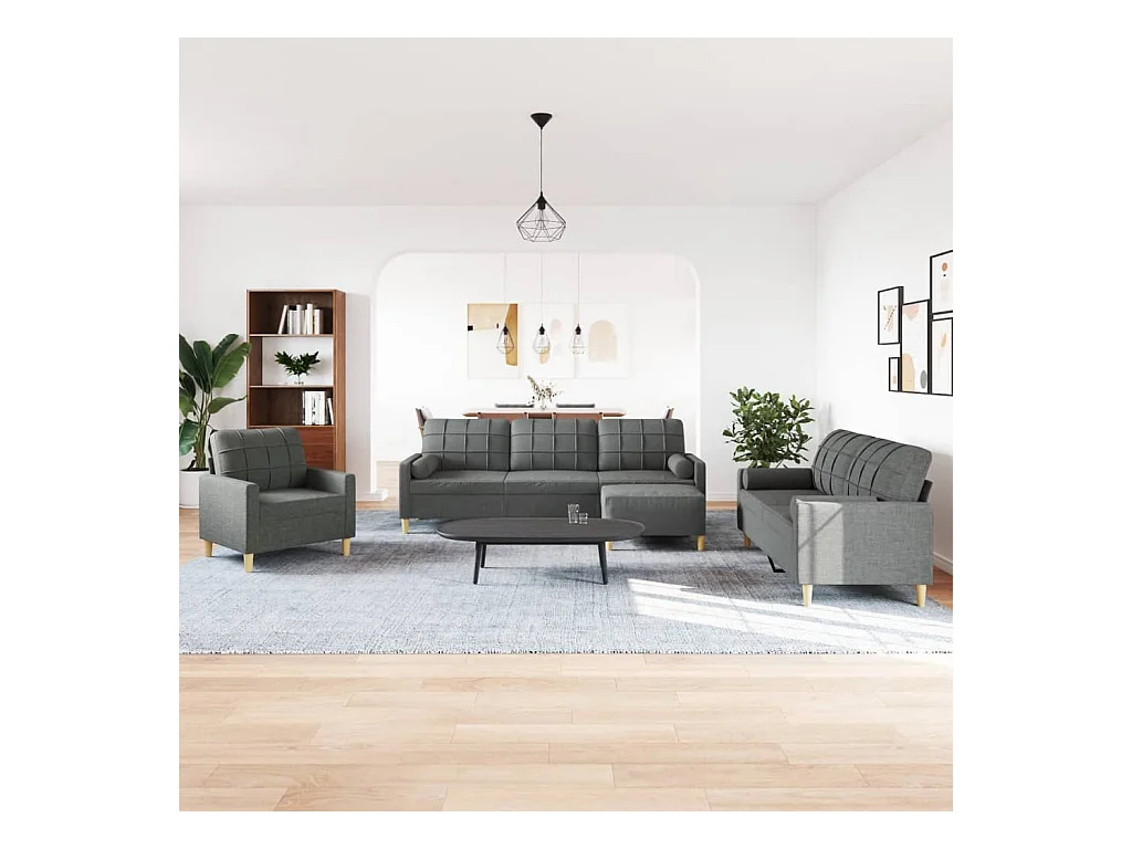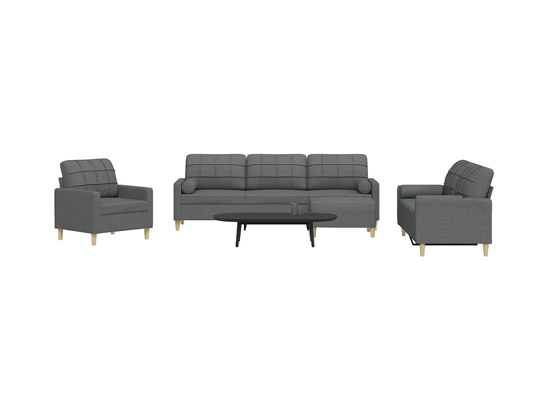 3-delige Loungeset met sierkussens stof lichtgrijs