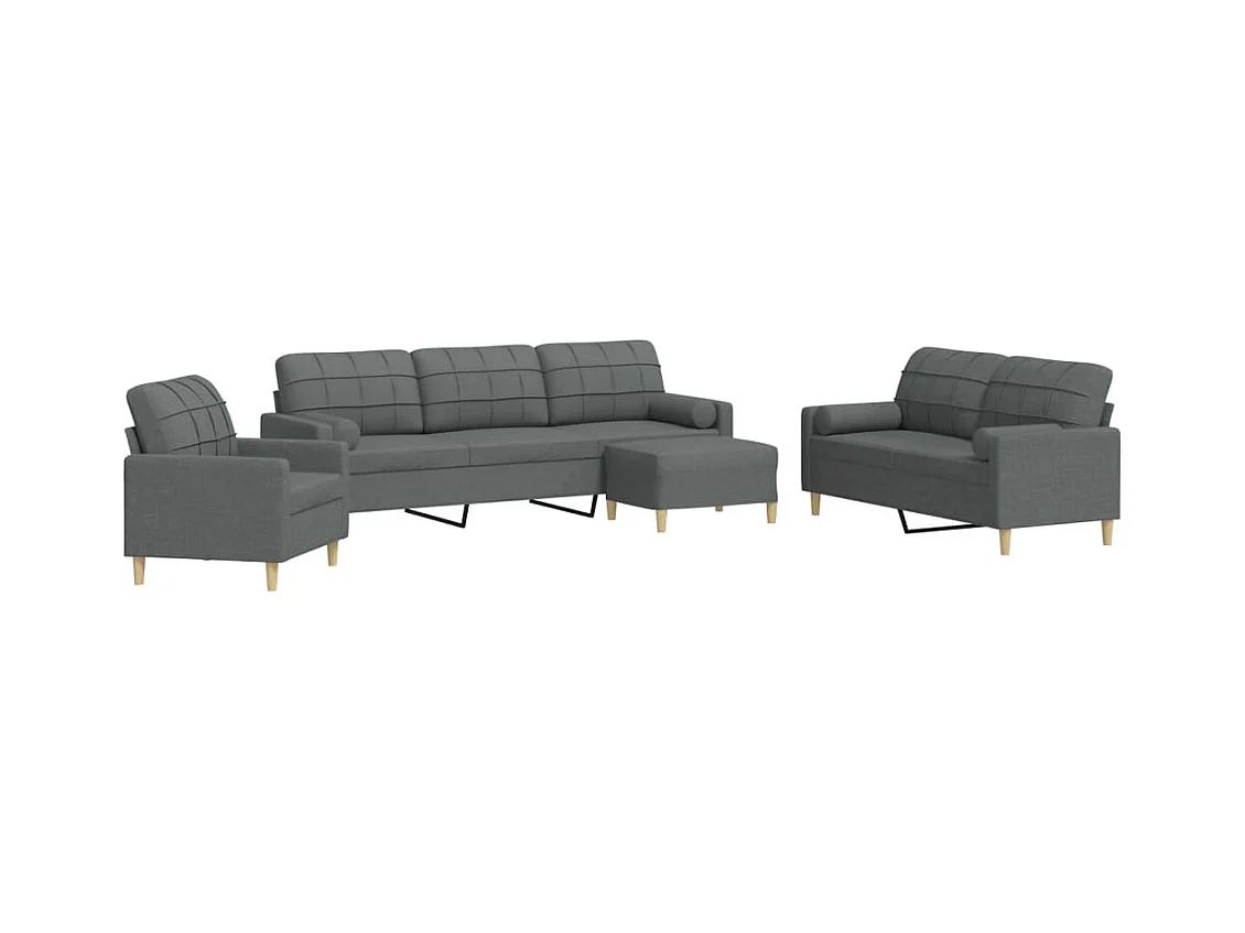 4-delige Loungeset met voetenbank en kussens stof donkergrijs
