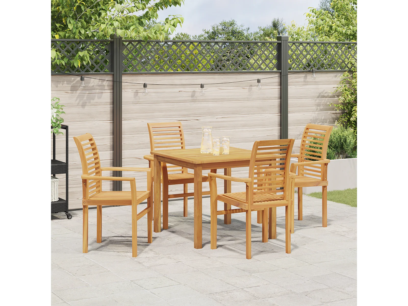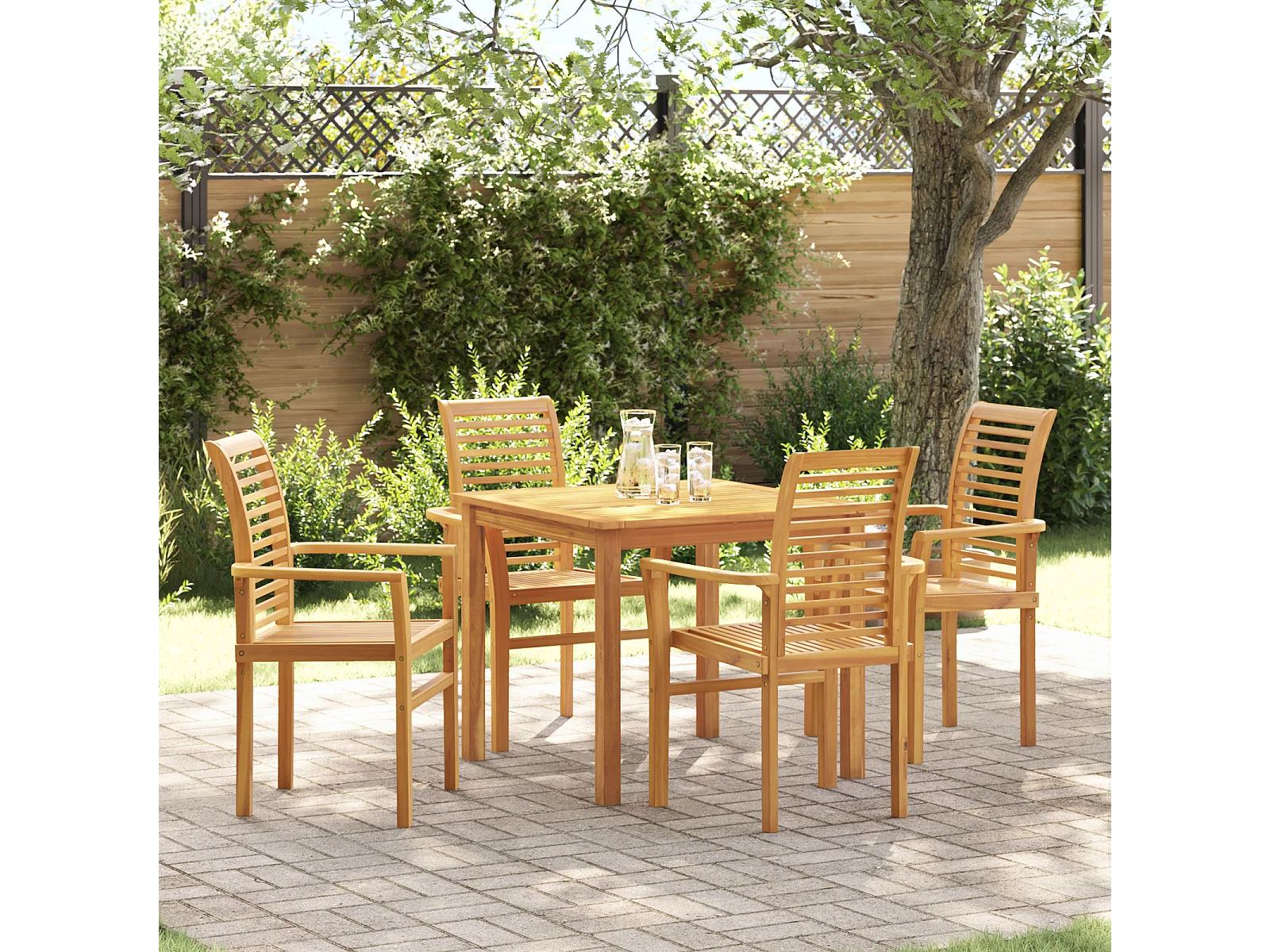 4-delige stapelbare tuinstoel van massief teakhout
