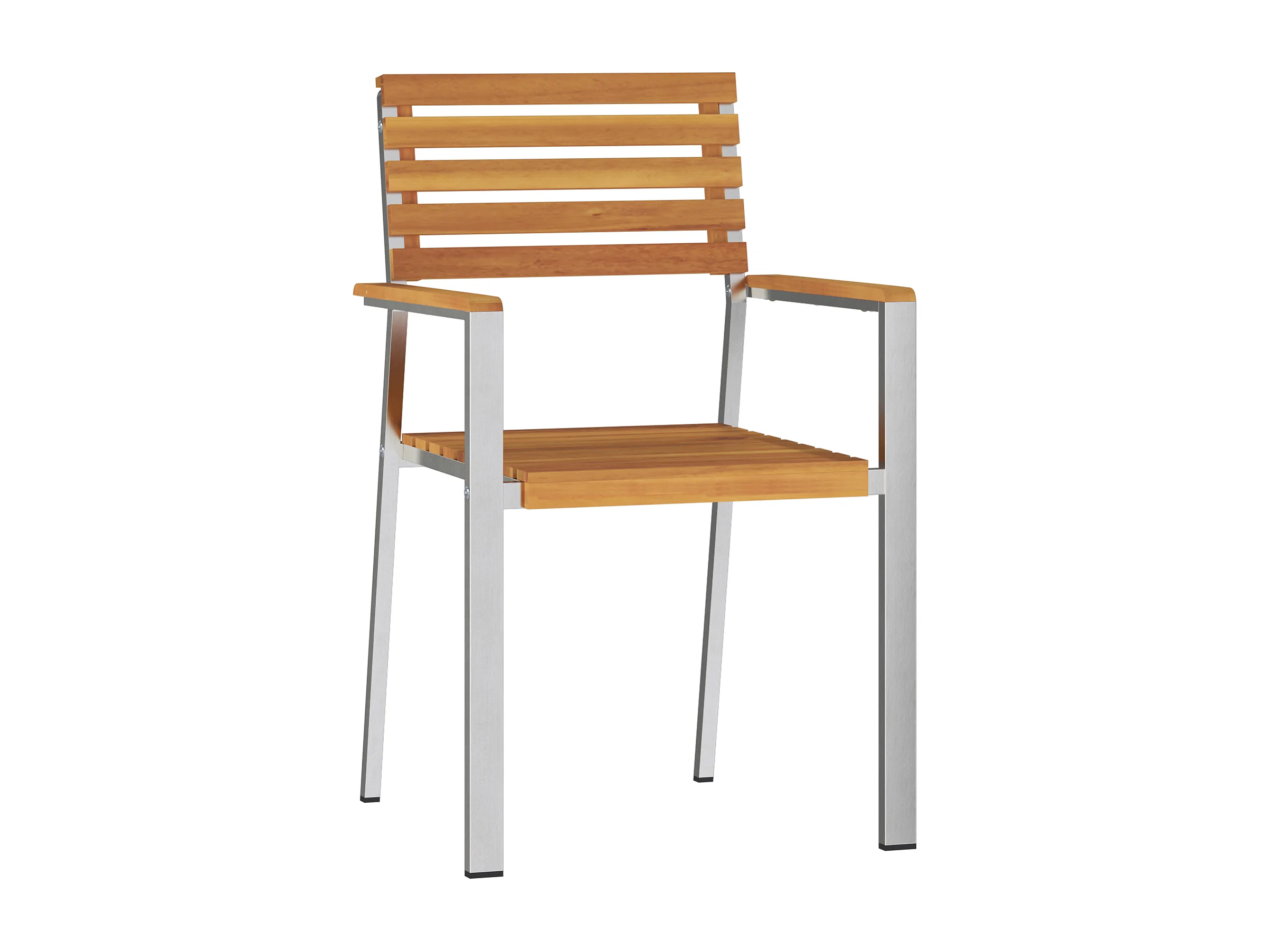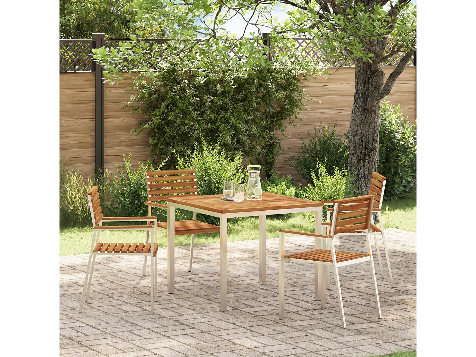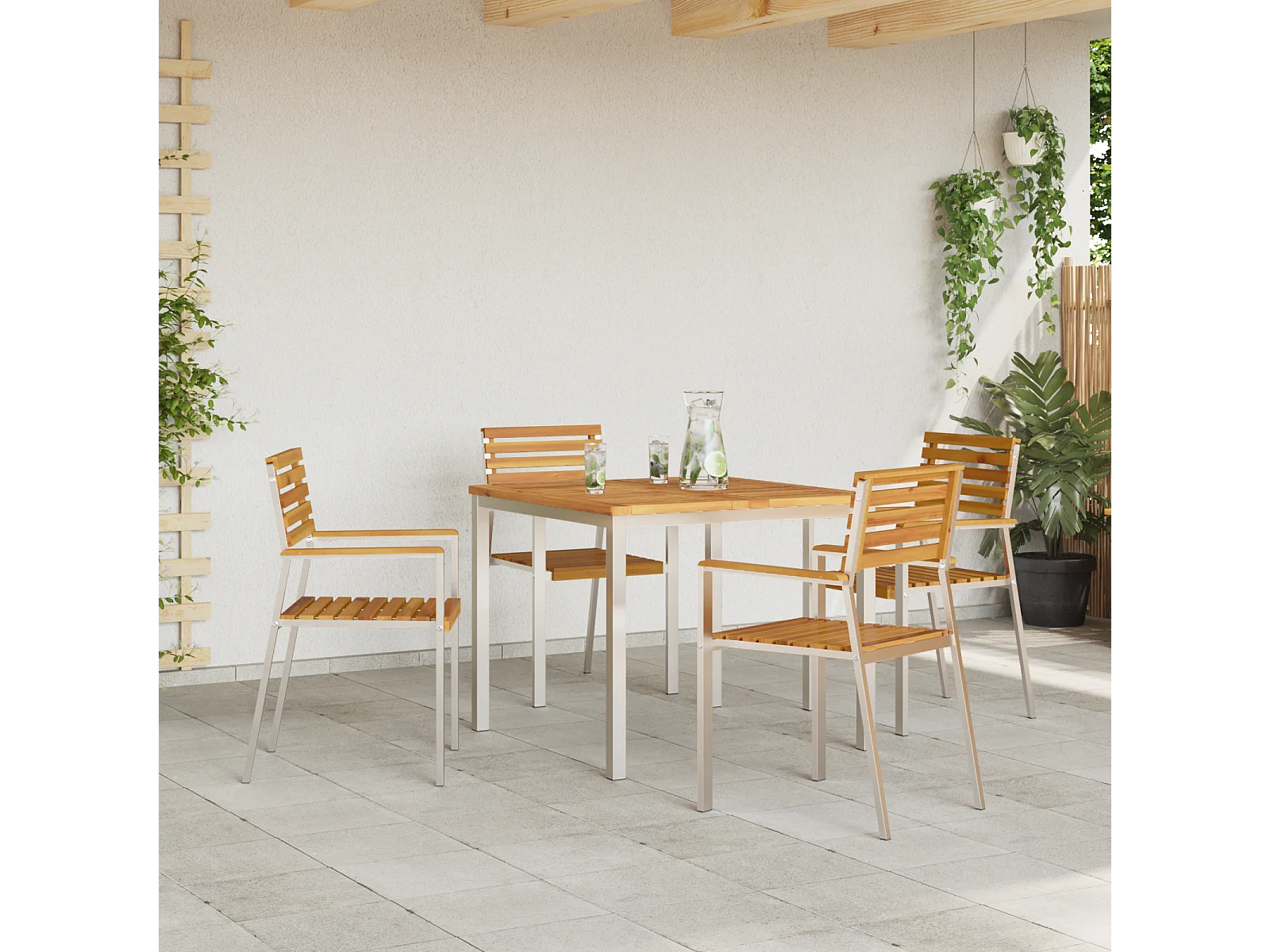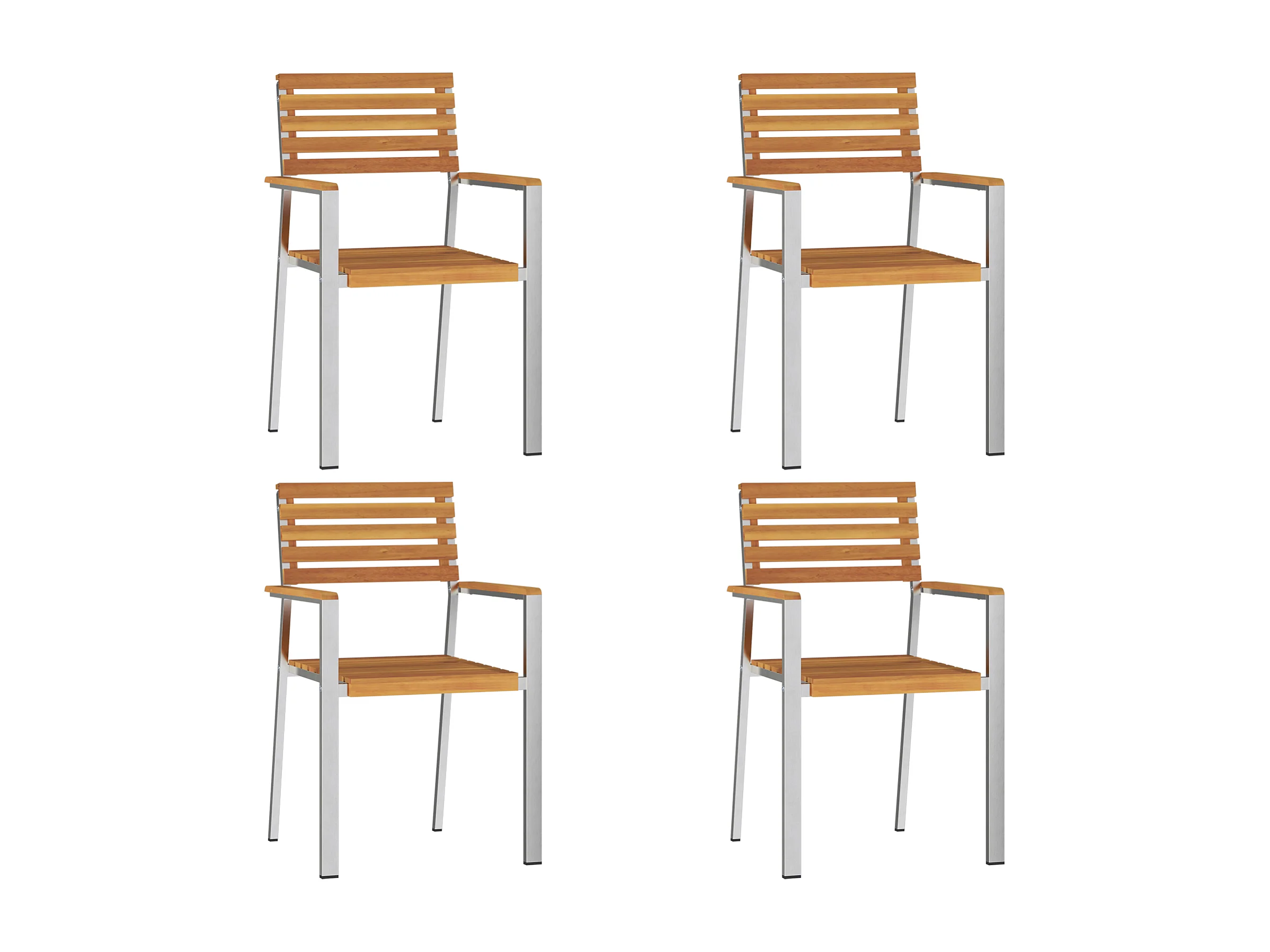 4-delige stapelbare tuinstoelen van acaciahout en roestvrij staal