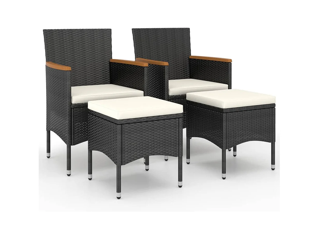4-delige Tuinstoel- en voetenbankset poly rattan zwart NL547286