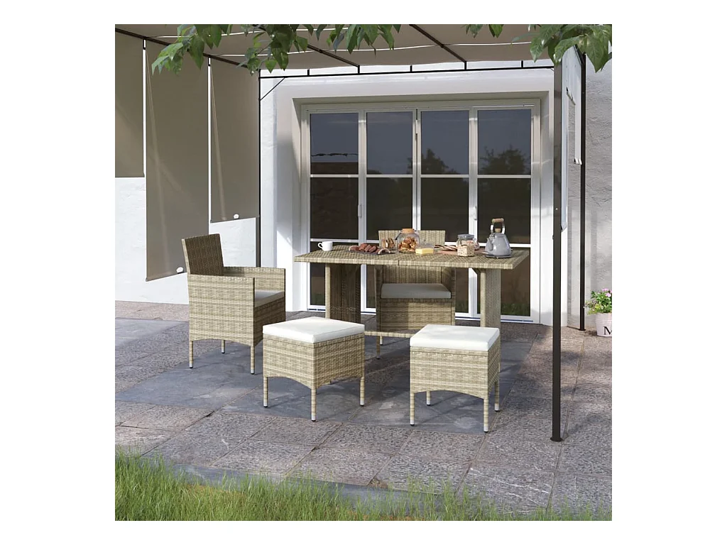 4-delige Tuinstoelen- en voetenbankenset poly rattan beige NL368057
