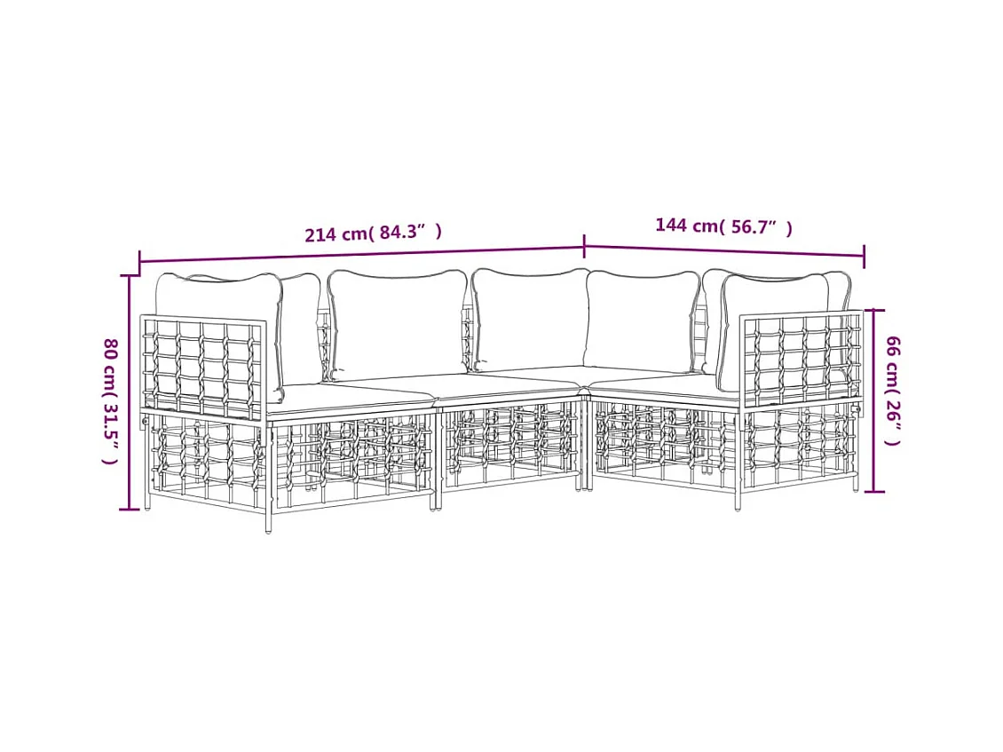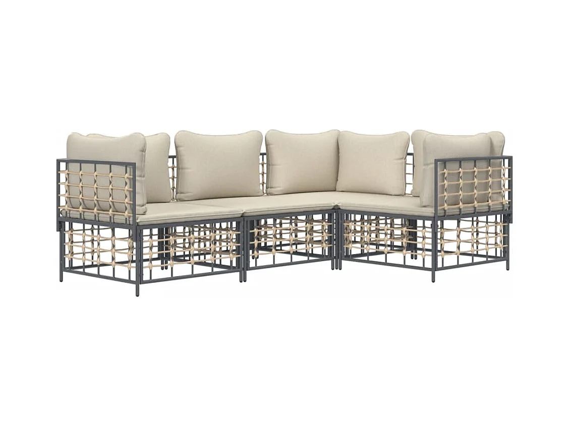 4 stuks tuinmeubelen met antraciet geweven harskussens