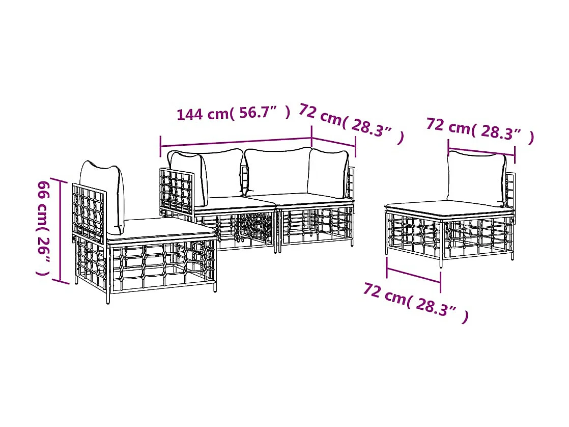 4 stuks tuinmeubelen met antraciet geweven harskussens