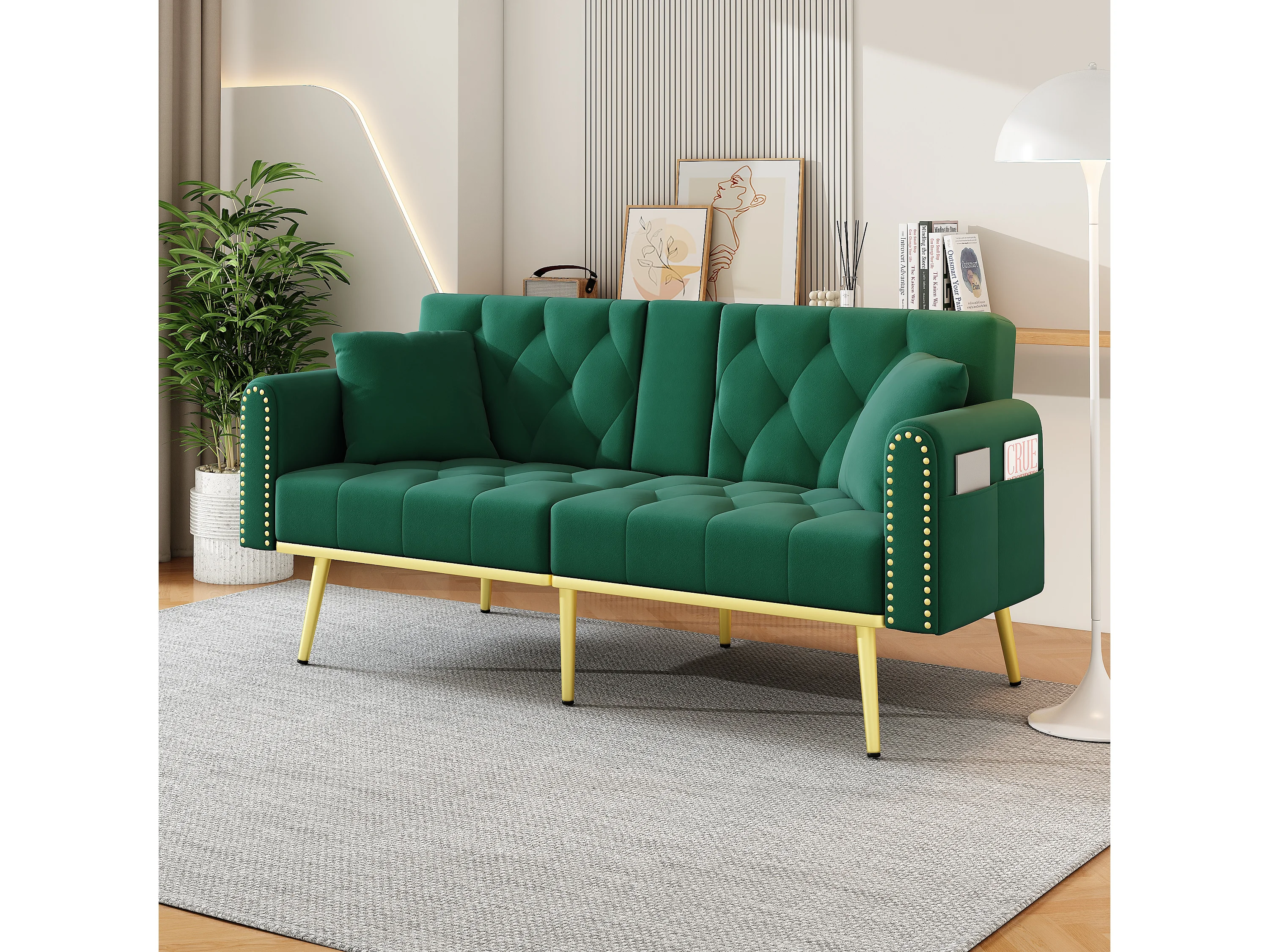 Slaapbank modern verstelbare rugleuning 3 standen fluweel metalen pootjes goud Groen (Zonder matras)