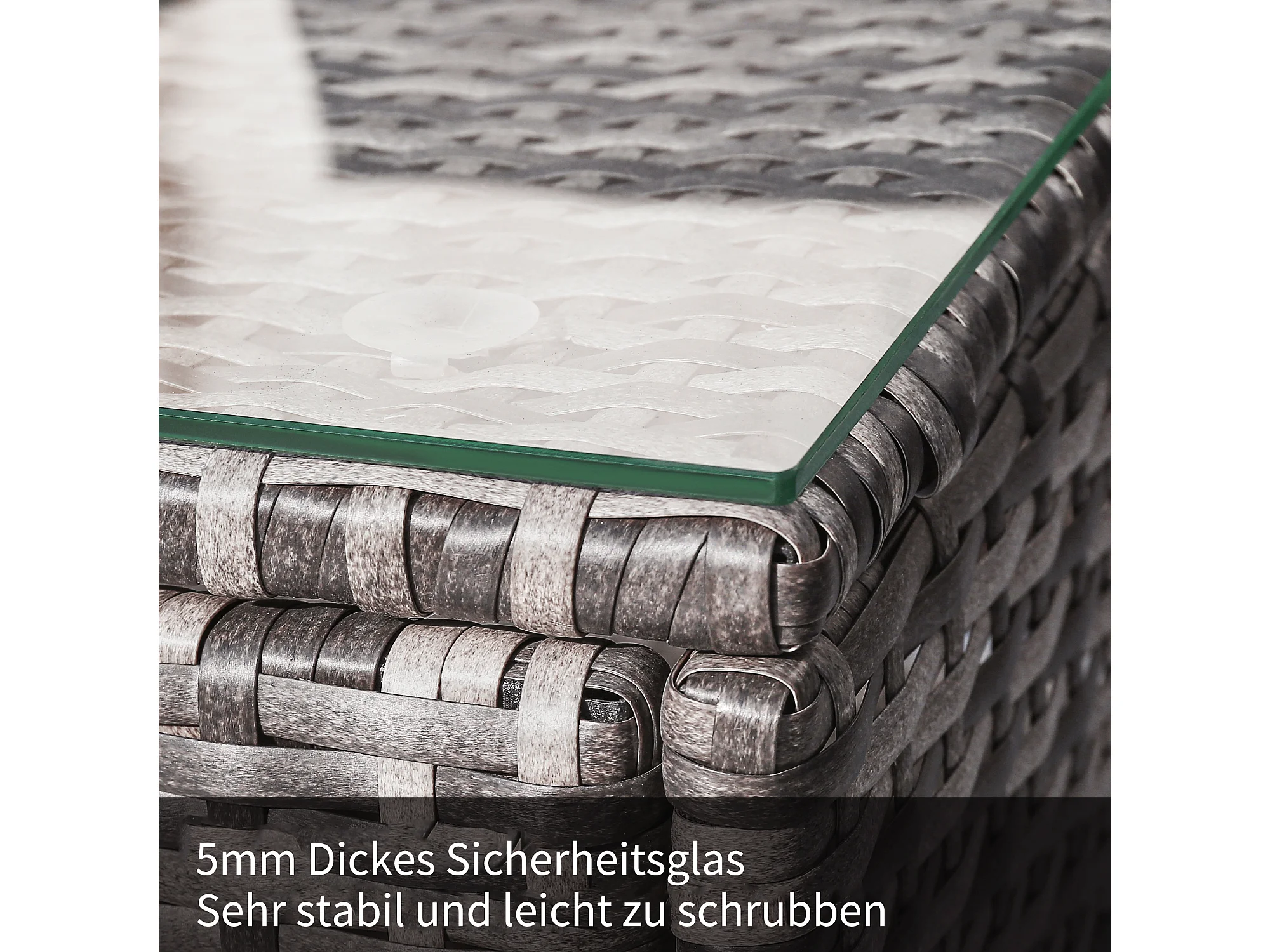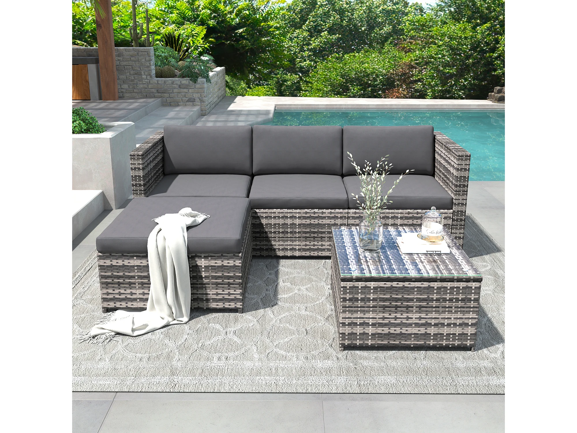 4-zits kunsthars wicker hoek tuinmeubelset met salontafel - Glazen blad - Grijs
