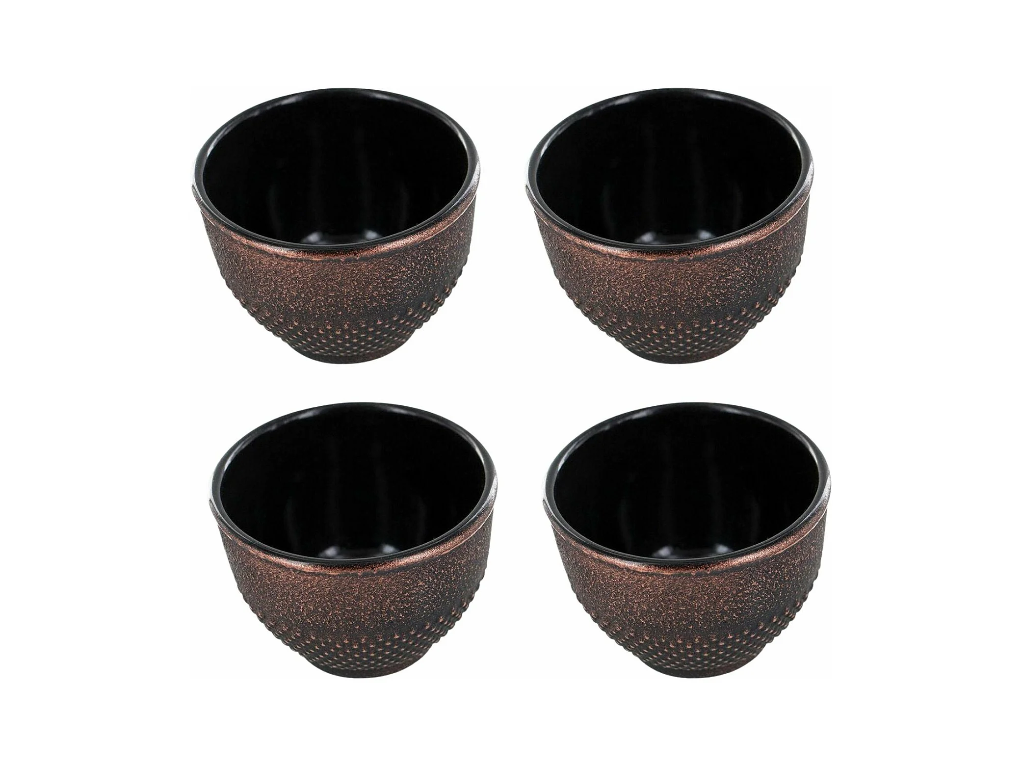 4 zwarte en bronzen gietijzeren bekers 0,15 L