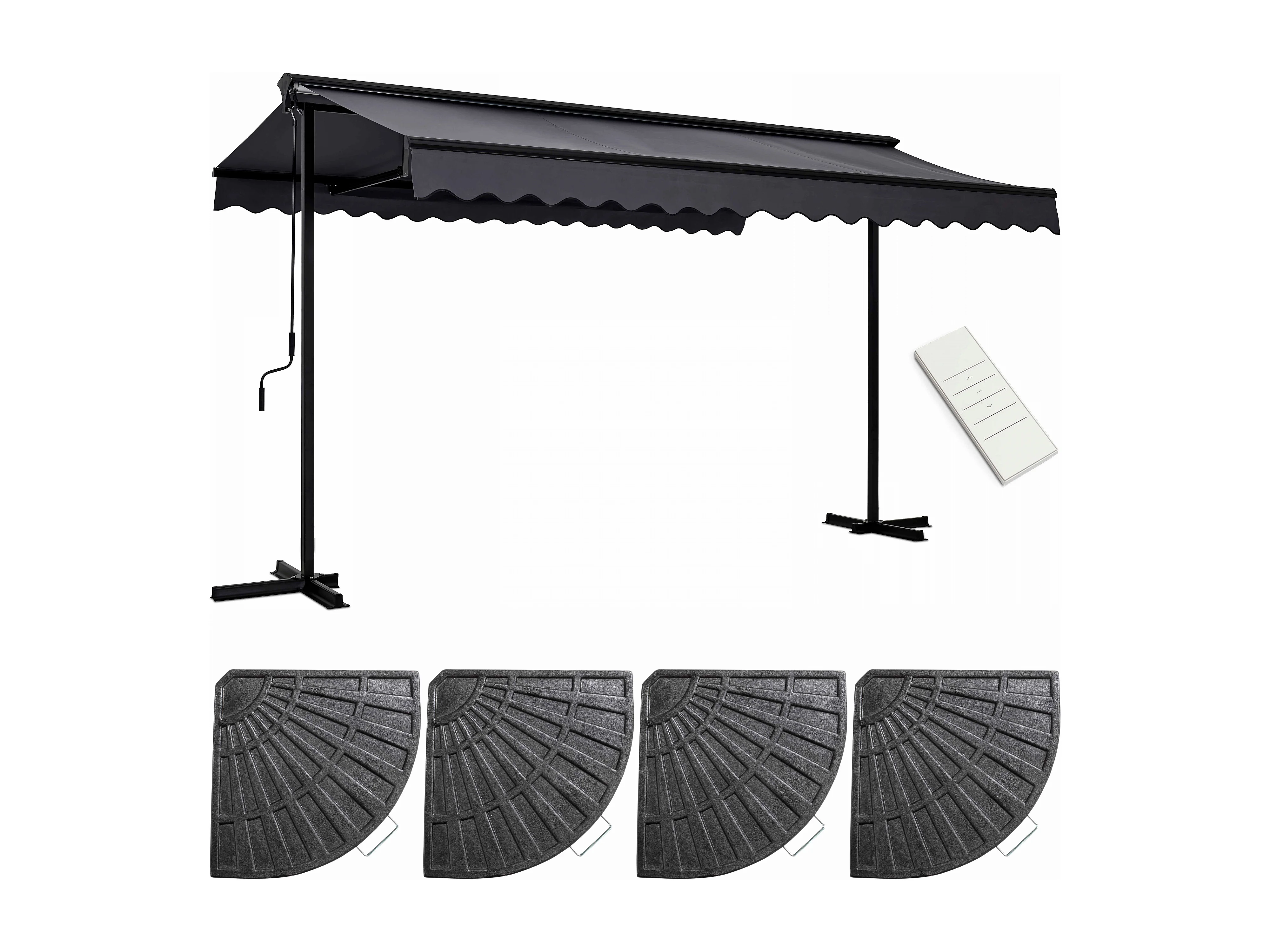 4x3m mobiele luifel en 4 verzwaarde grijze tegels