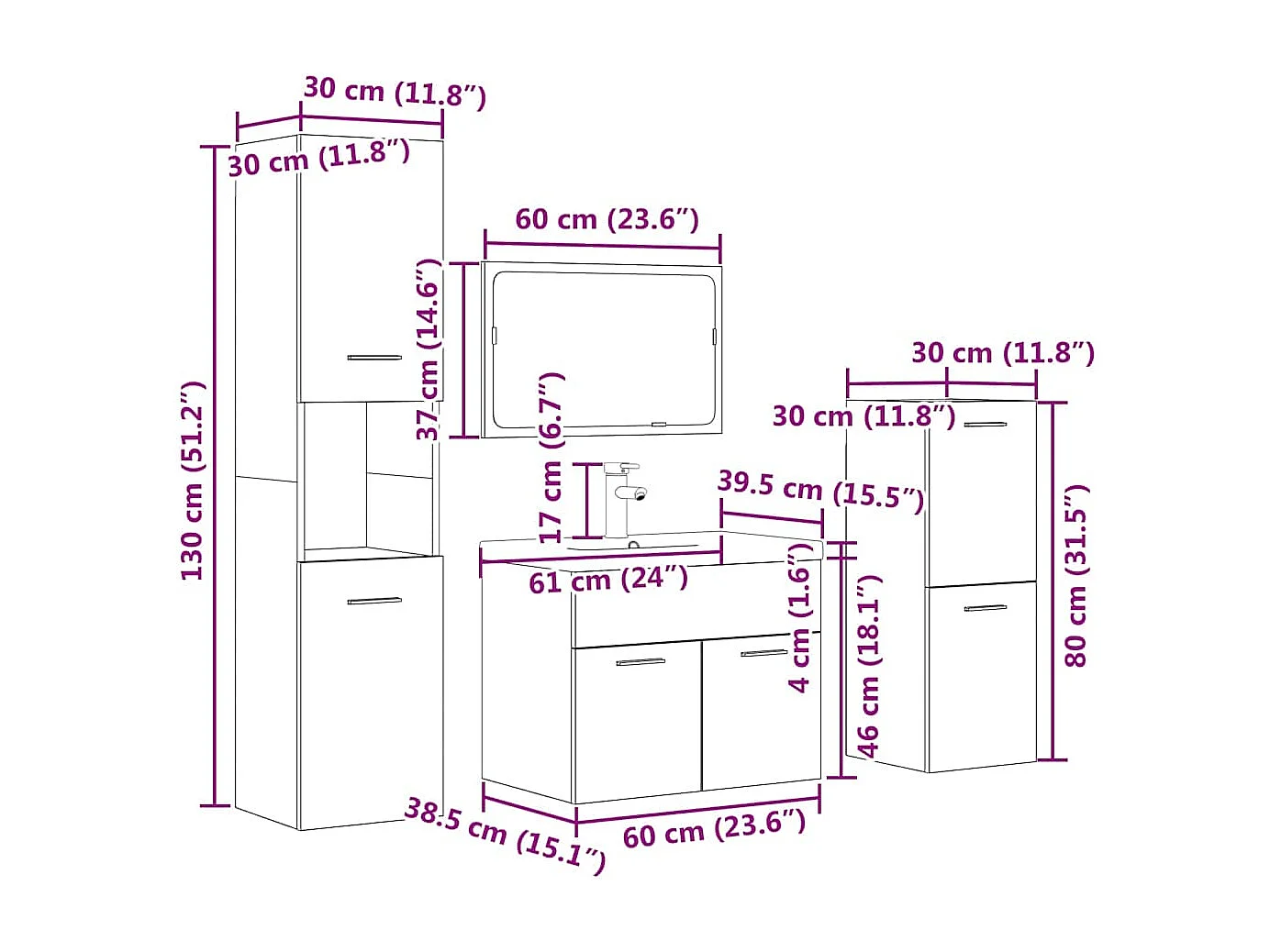5-delige Badkamermeubelset bewerkt hout betongrijs