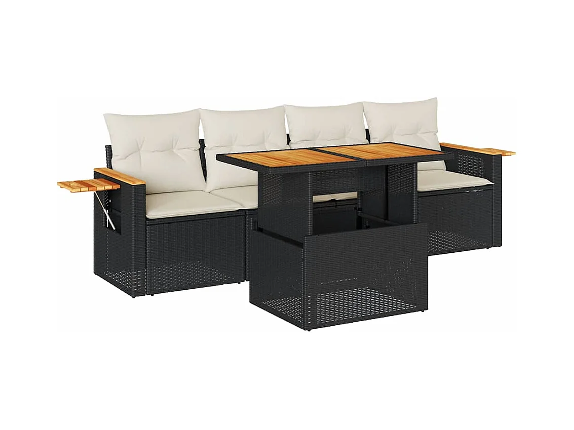 5-delige Loungeset met kussens poly rattan acacia zwart