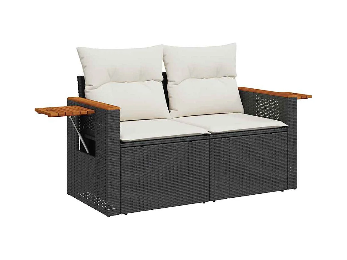 6-delige Loungeset met kussens poly rattan acacia zwart