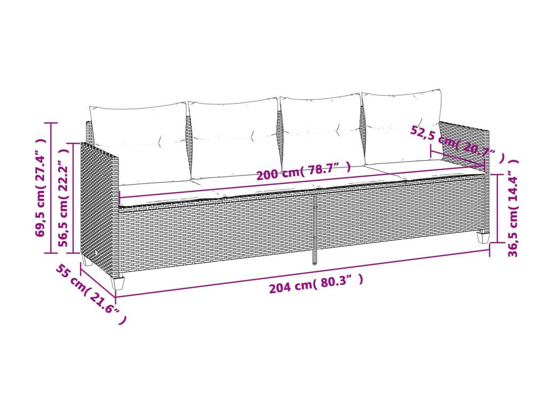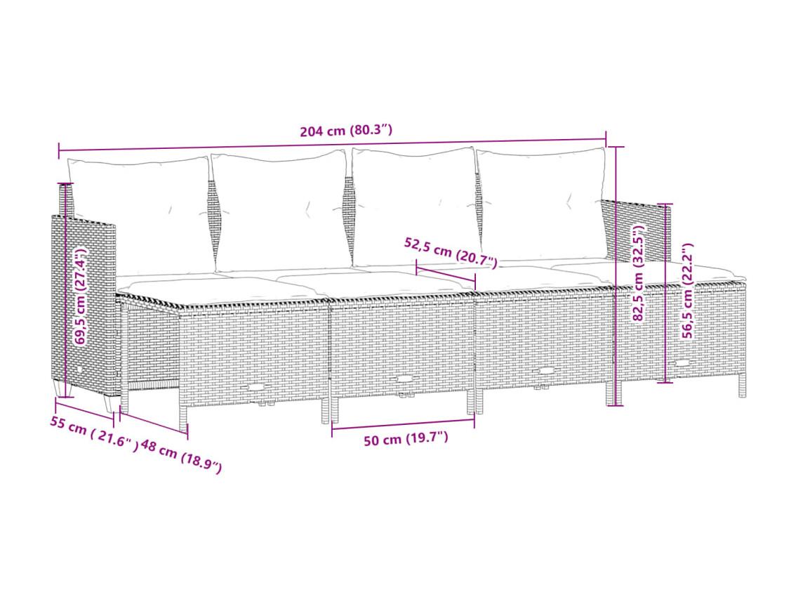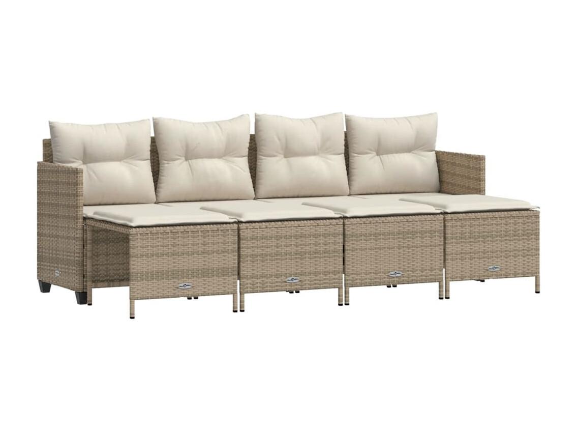 5-delige Loungeset met kussens poly rattan beige