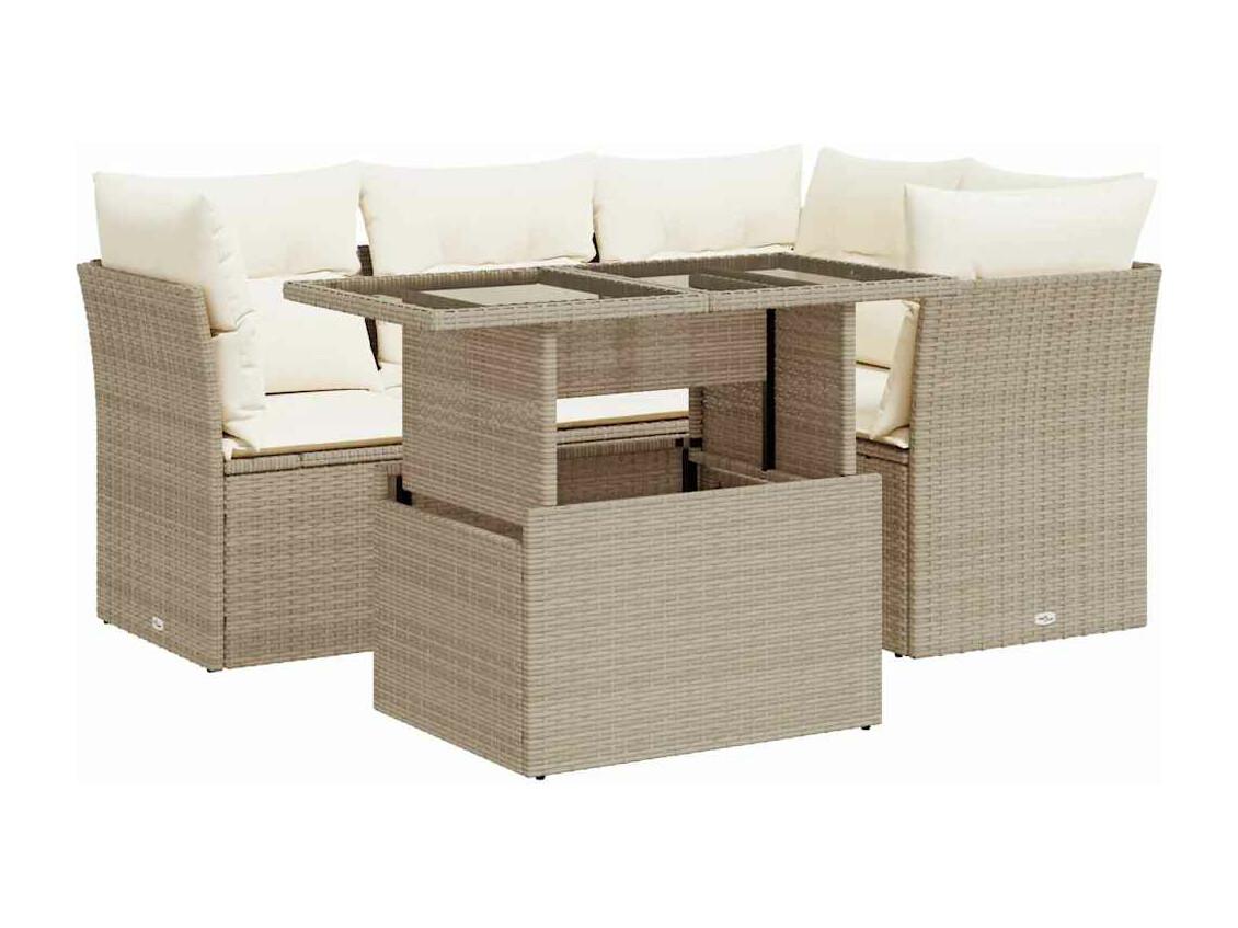 5-delige Loungeset met kussens poly rattan beige