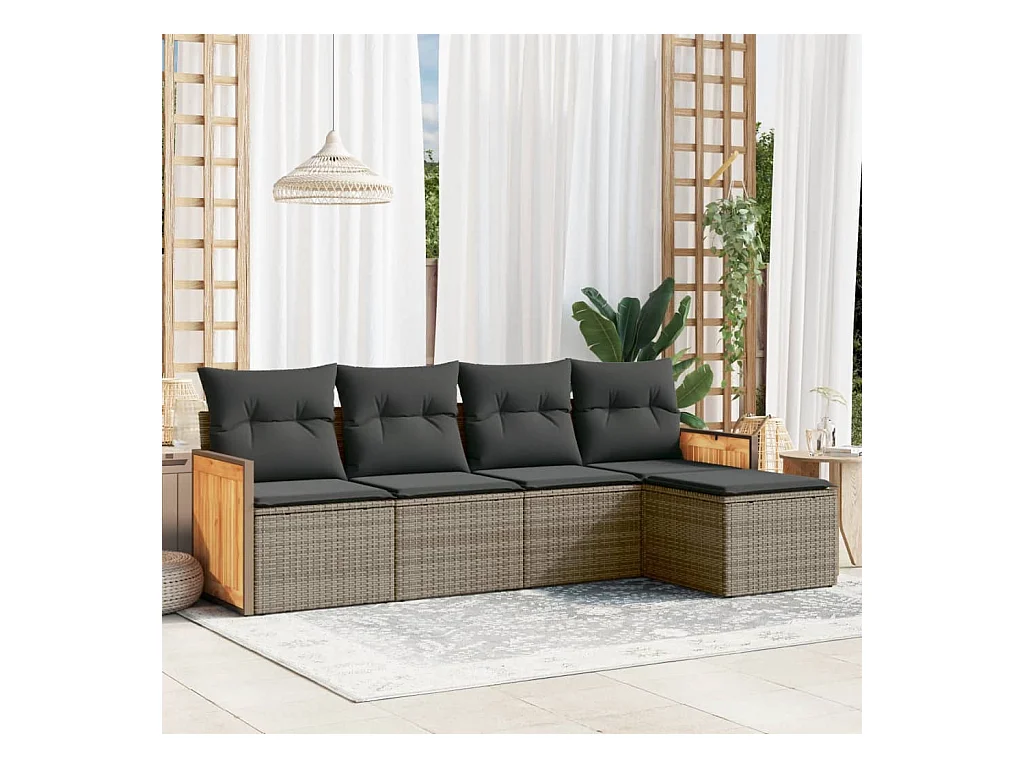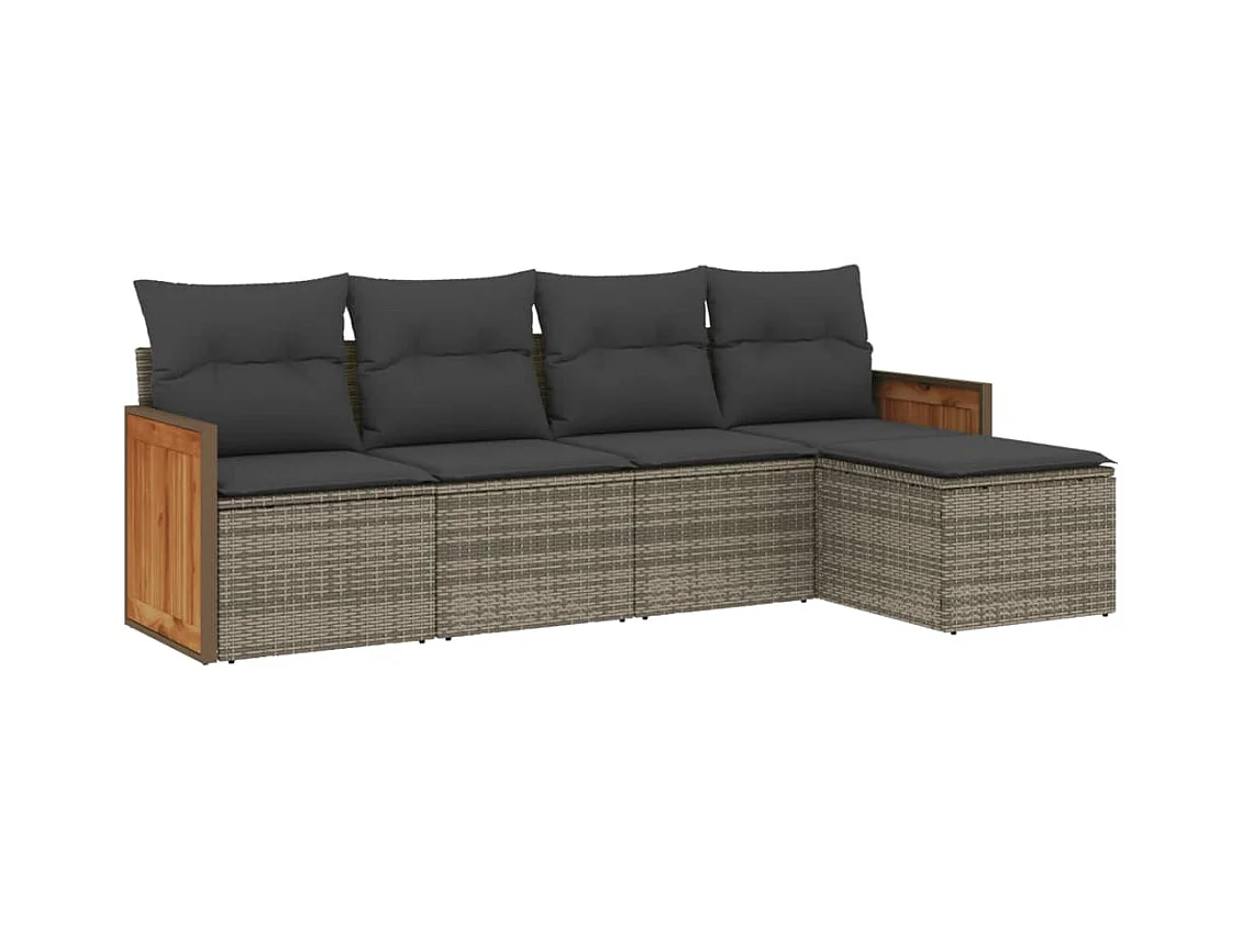 5-delige Loungeset met kussens poly rattan grijs