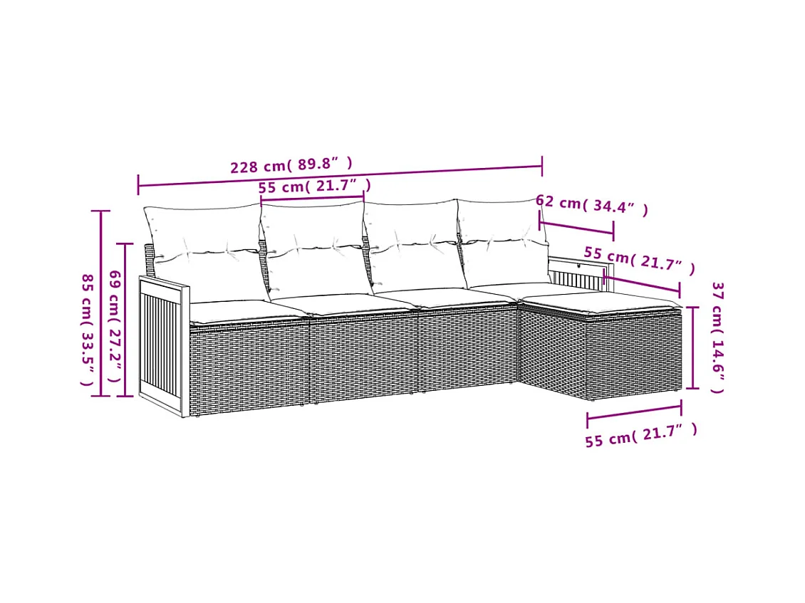 5-delige Loungeset met kussens poly rattan beige