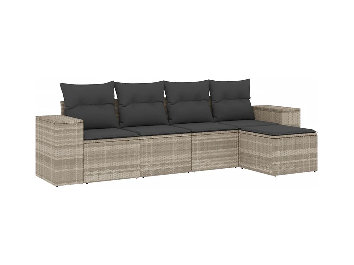 5-delige Loungeset met kussens poly rattan lichtgrijs