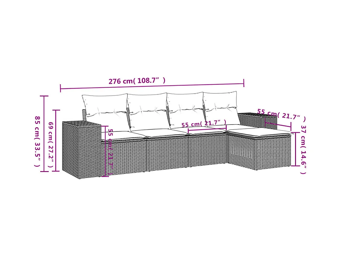 5-delige Loungeset met kussens poly rattan acacia grijs