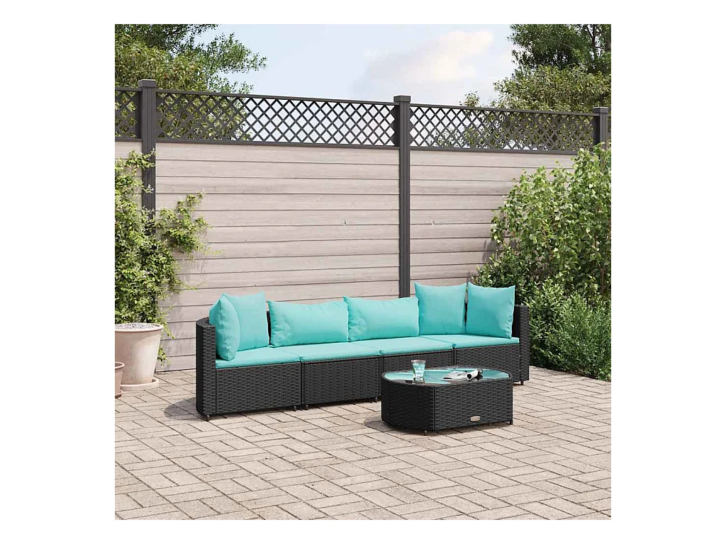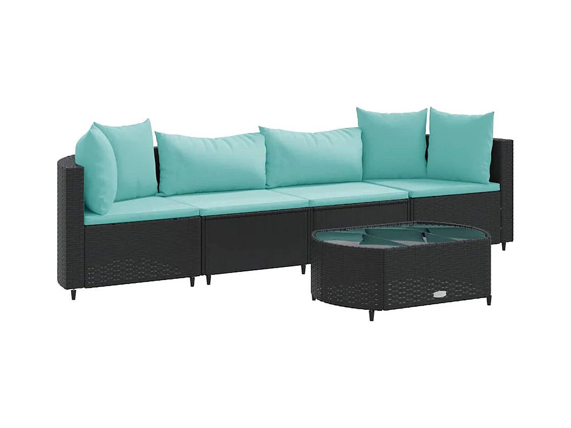 5-delige Loungeset met kussens poly rattan zwart