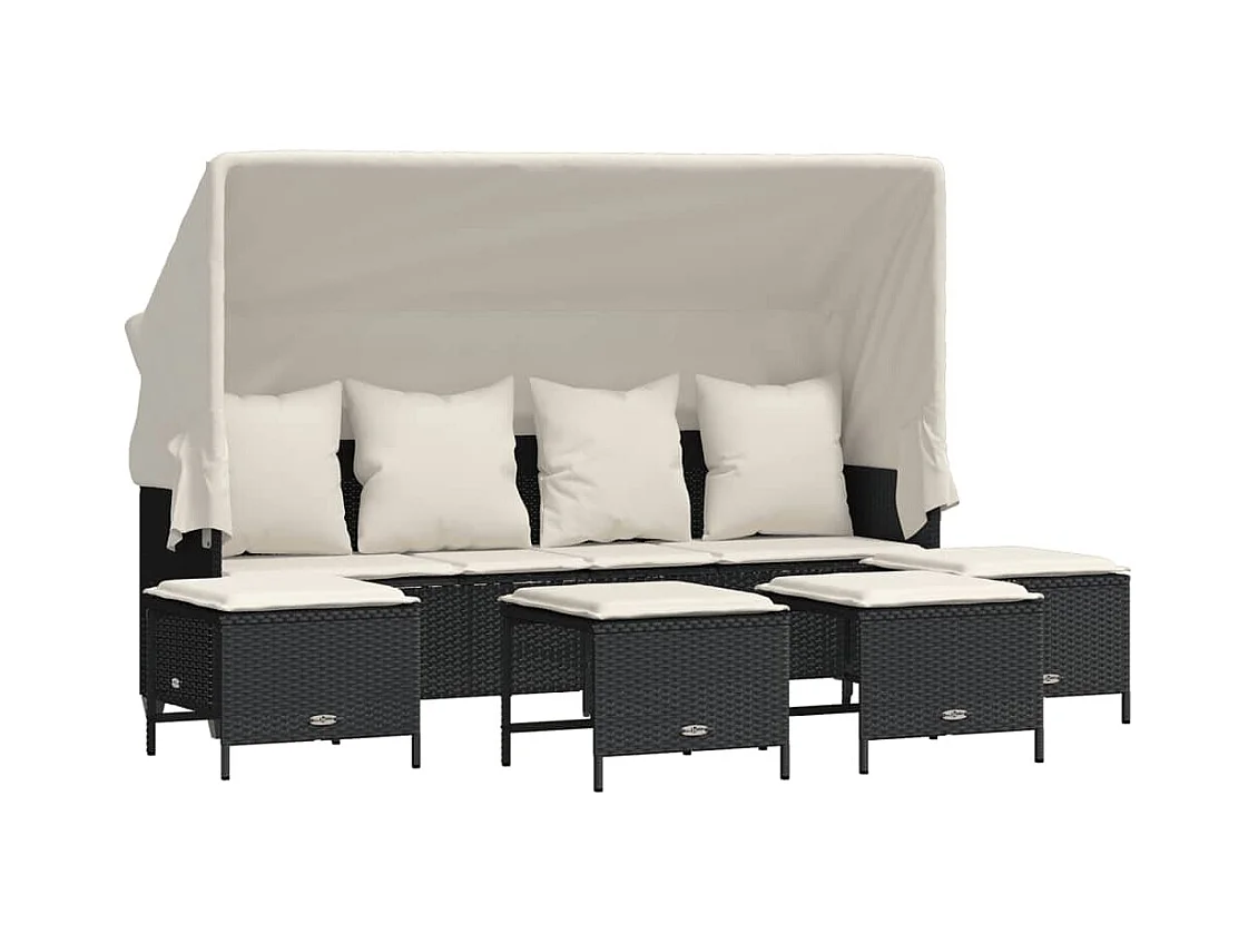 3-delige Loungeset met kussens gepoedercoat staal zwart