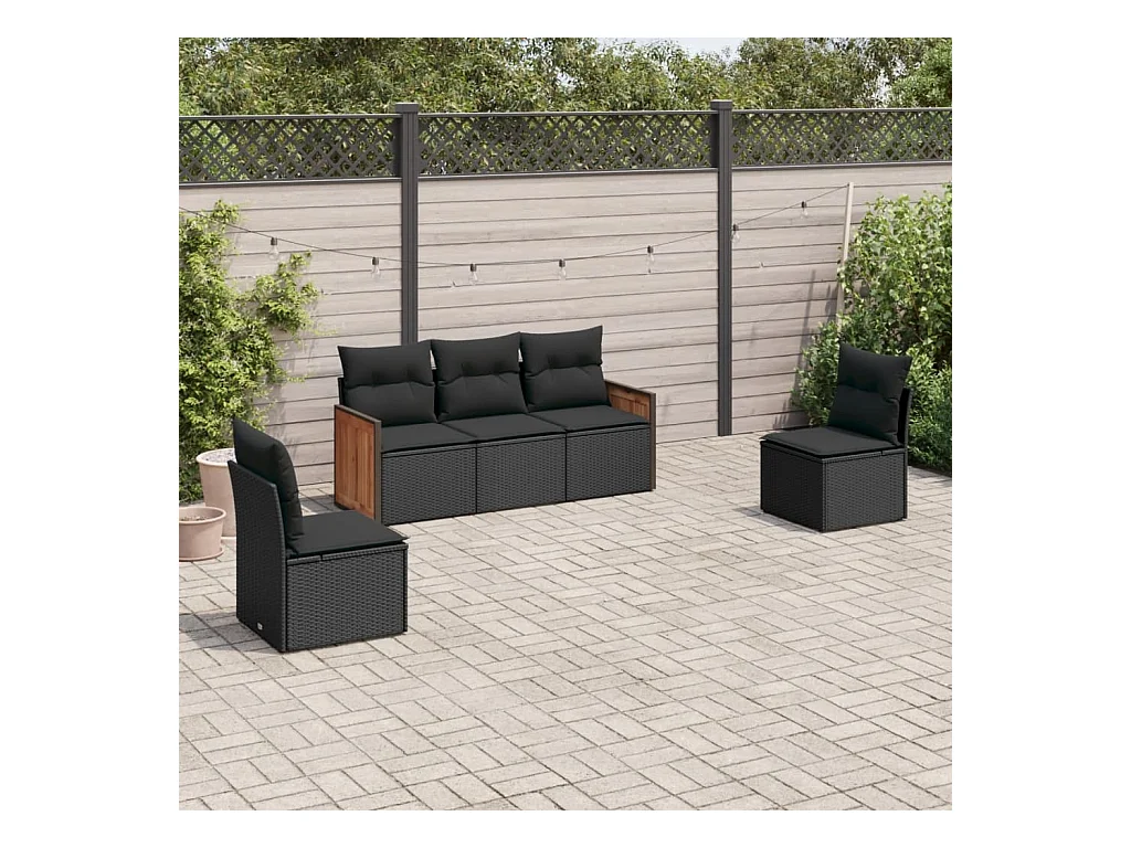 5-delige Loungeset met kussens poly rattan zwart BE784390