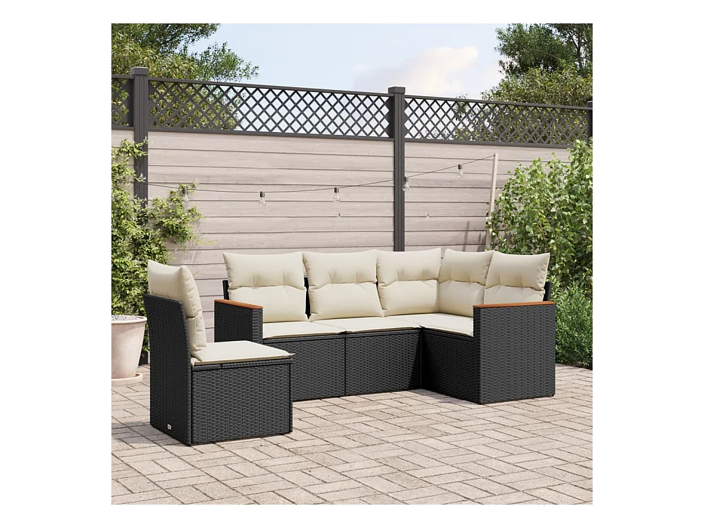 5-delige Loungeset met kussens poly rattan zwart BE725250