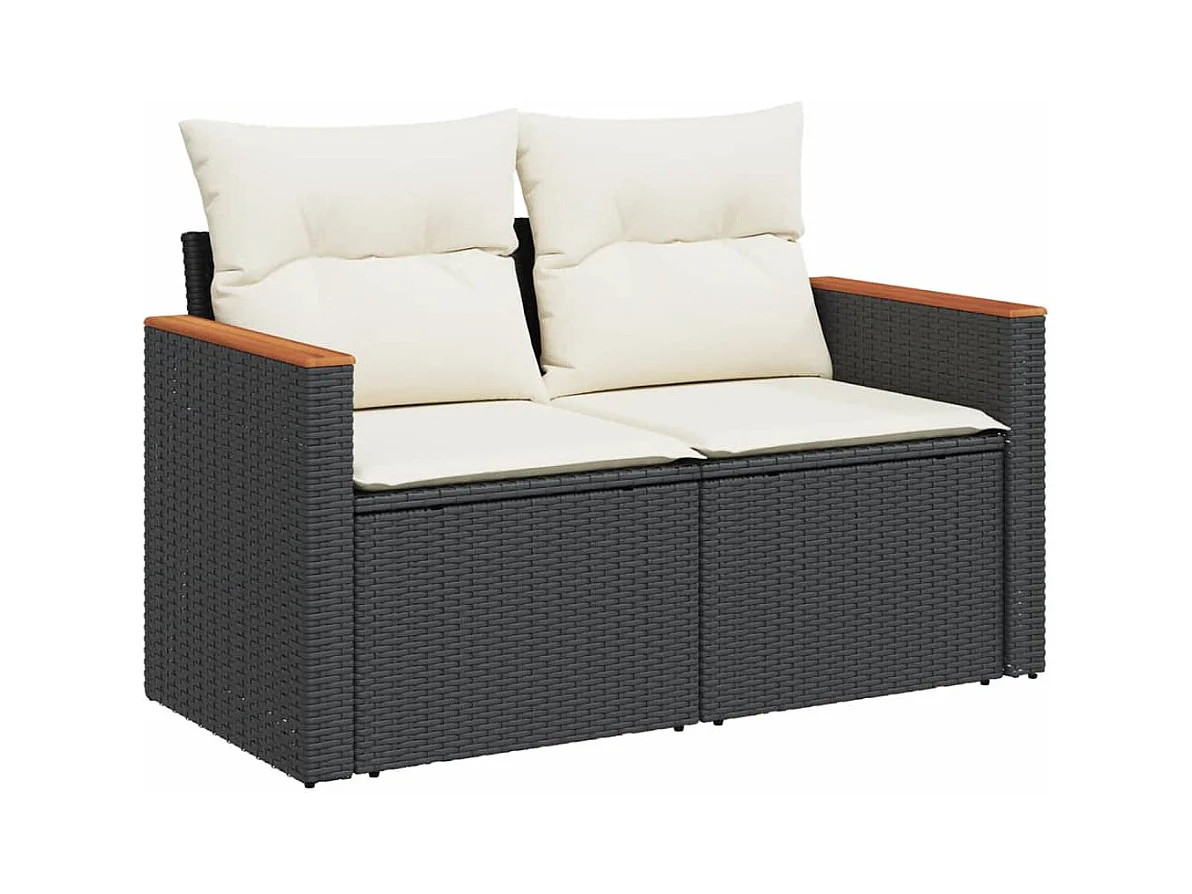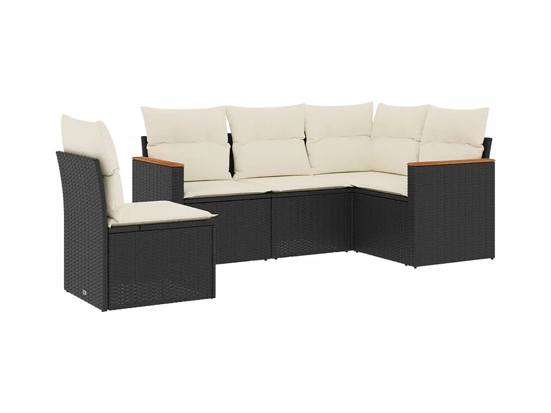 5-delige Loungeset met kussens poly rattan zwart BE329866