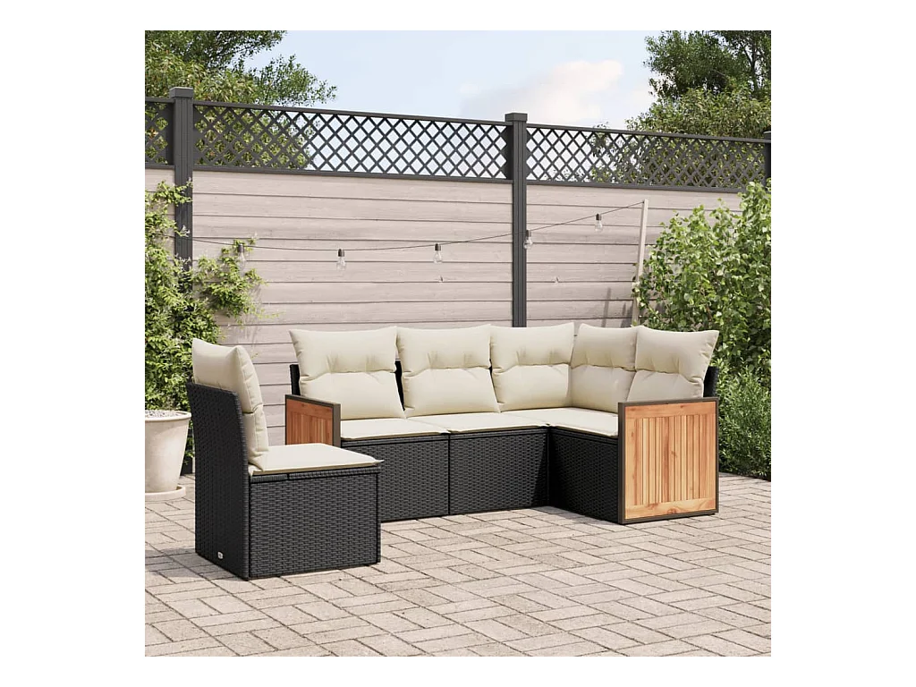 5-delige Loungeset met kussens poly rattan zwart BE398853