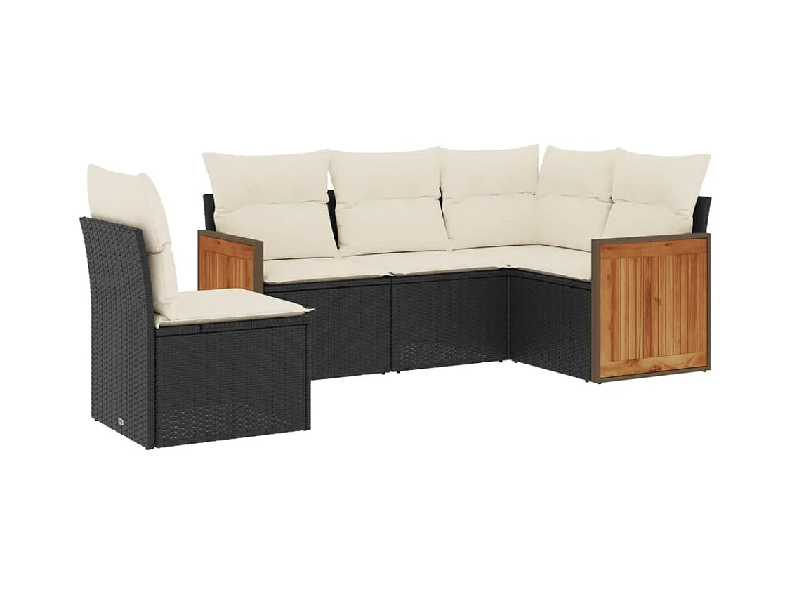 5-delige Loungeset met kussens poly rattan zwart BE936484