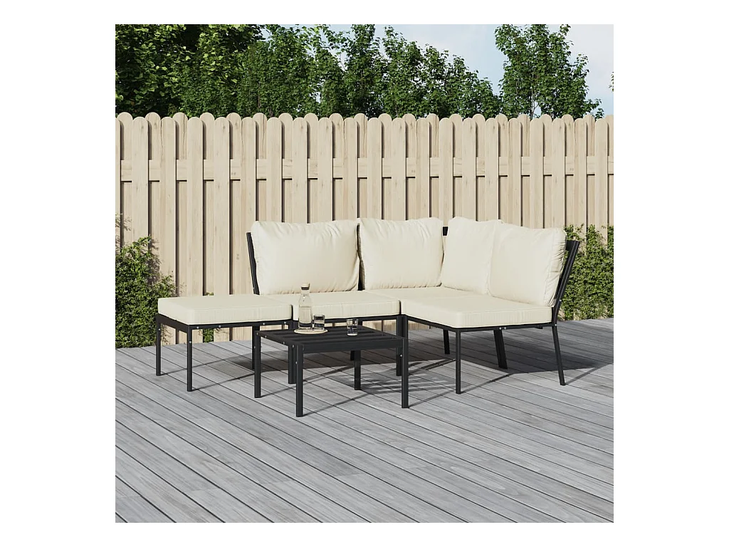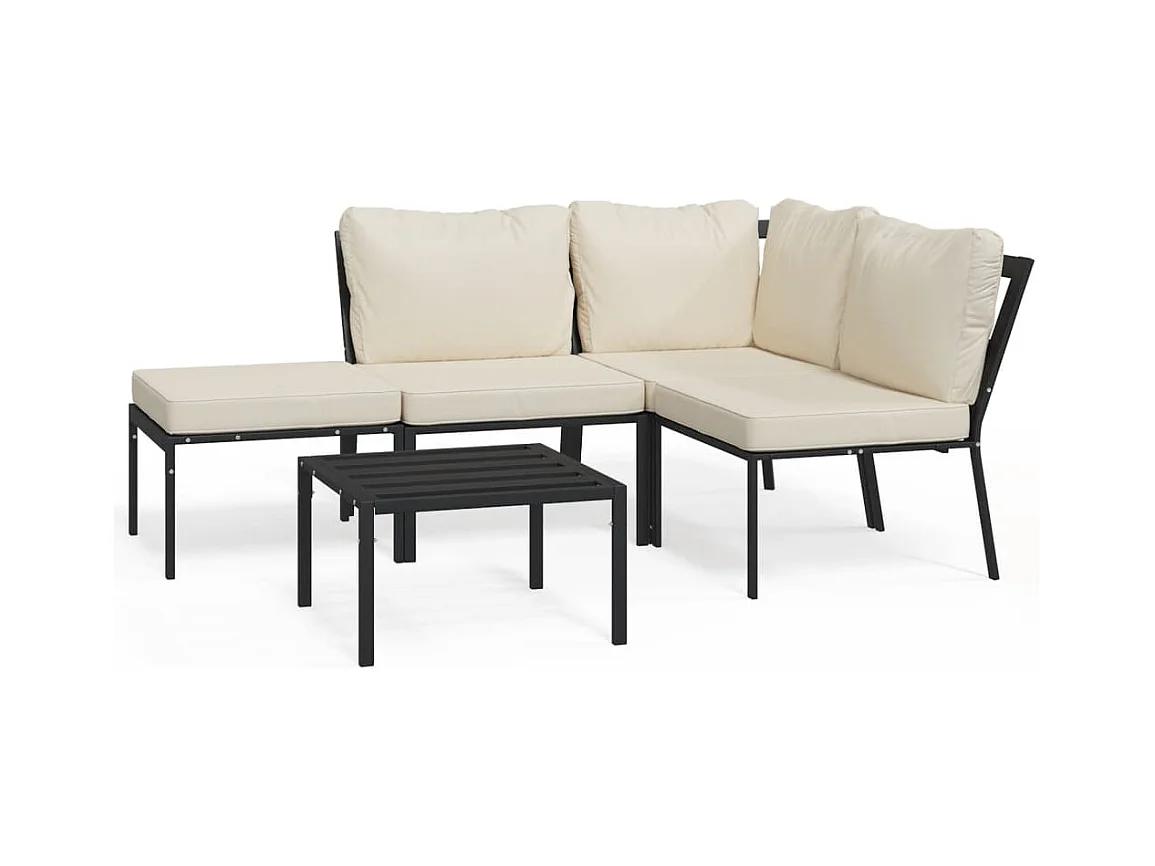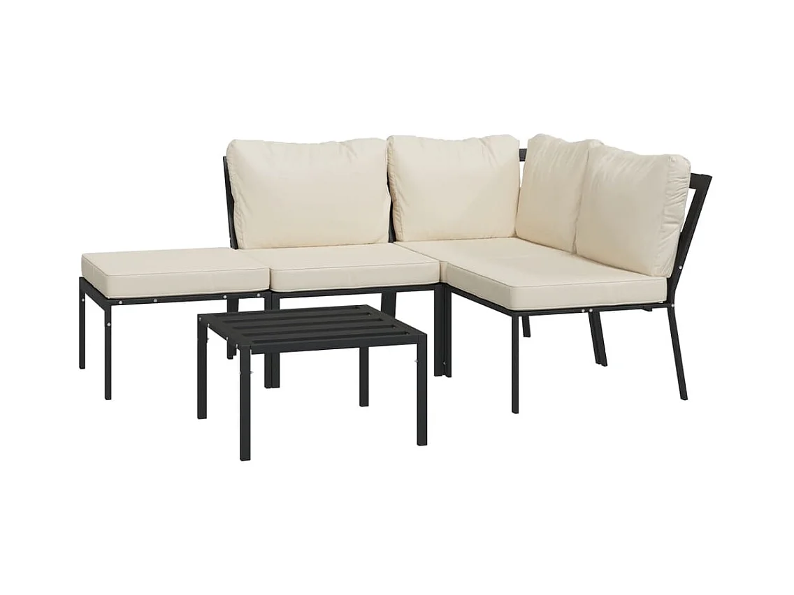4-delige Loungeset met kussens gepoedercoat staal zwart