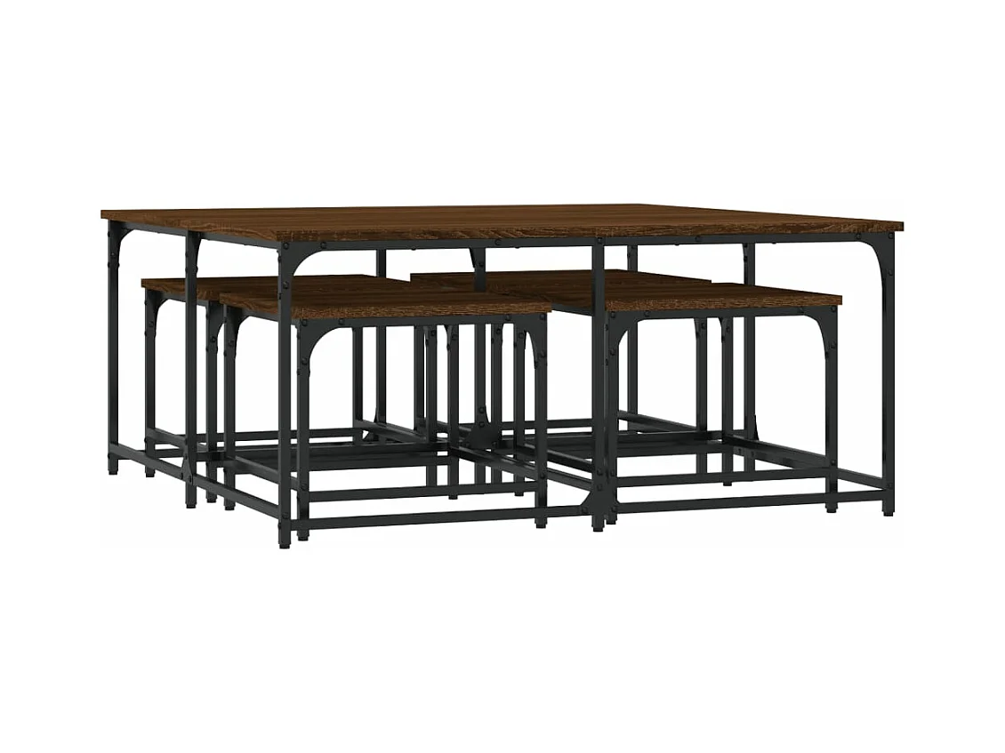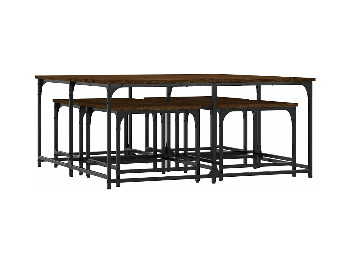 5-delige Tafeltjesset bewerkt hout gerookt eikenkleurig