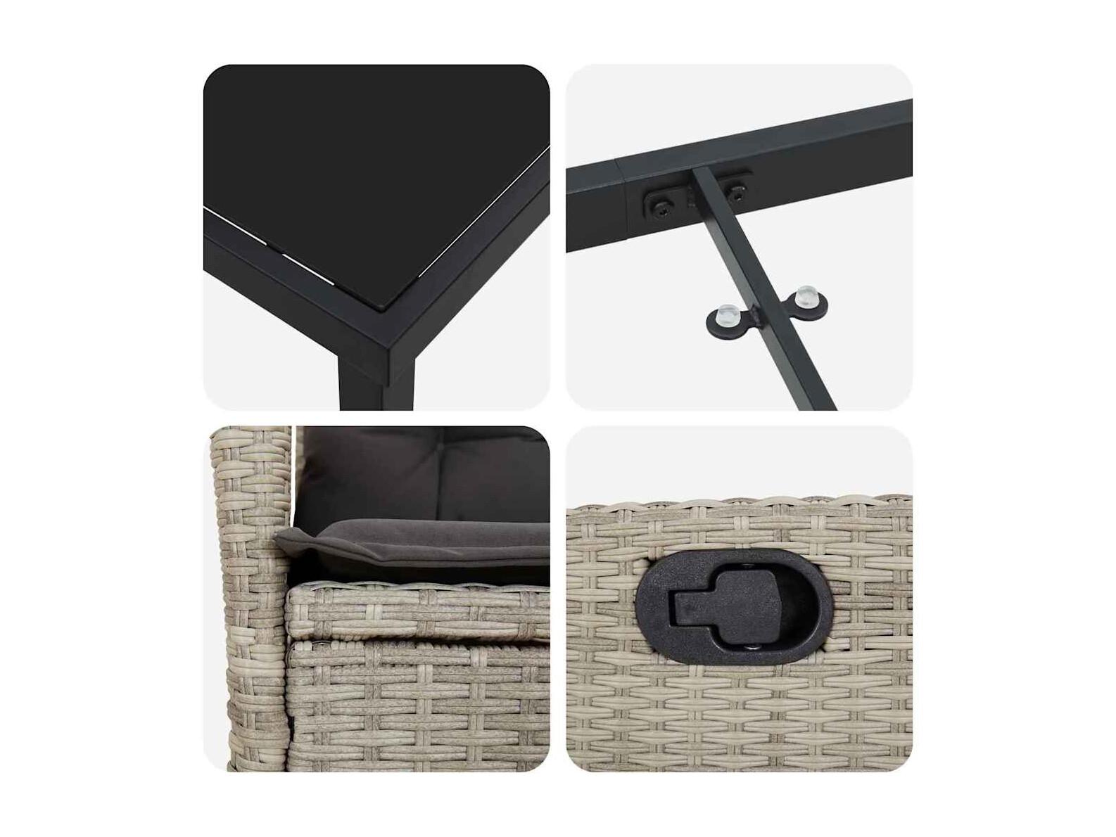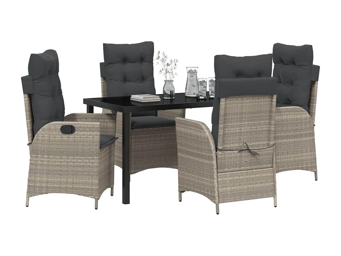 5-delige tuinset met lichtgrijze kussens van polyrotan