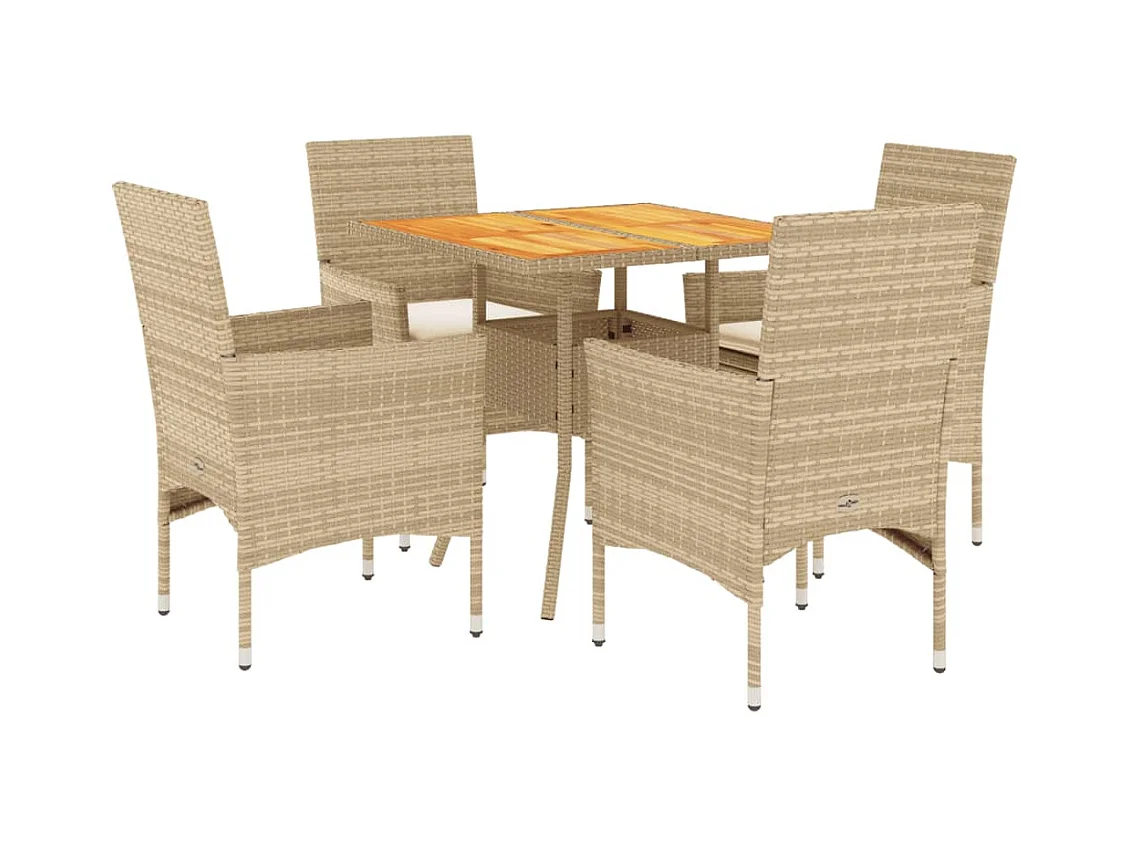 5-delige Tuinset met kussens poly rattan en acaciahout beige