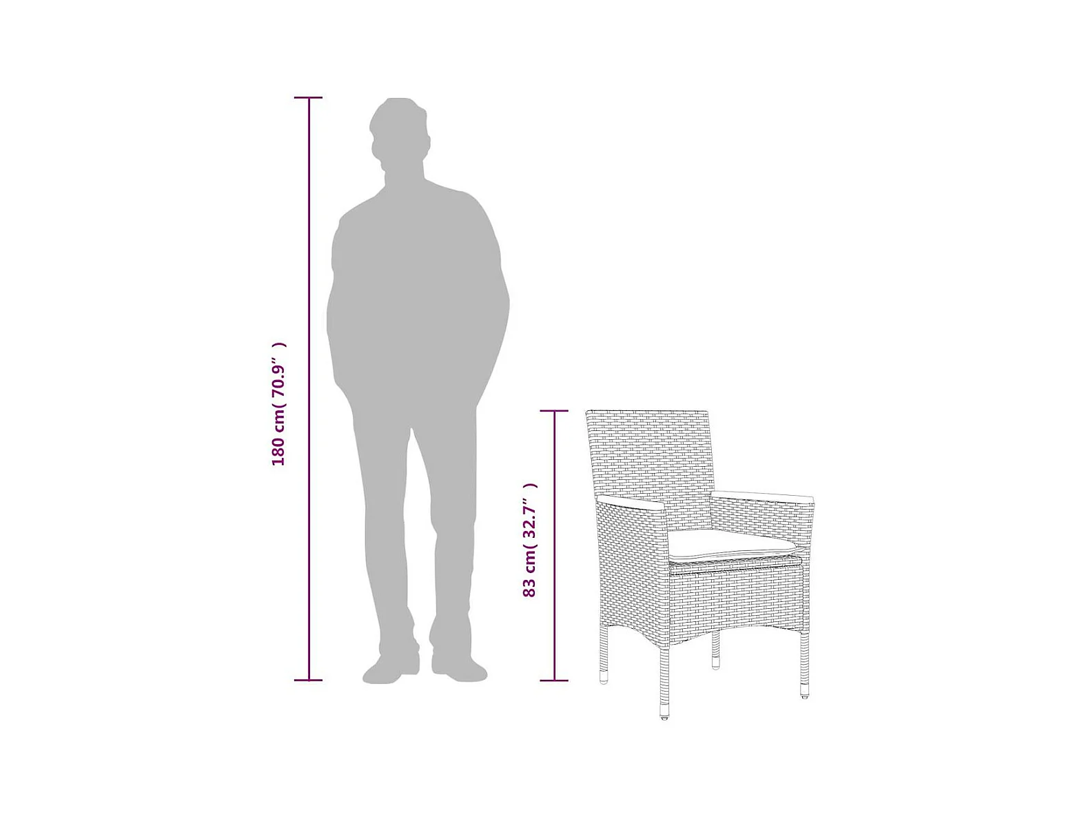5-delige Tuinset met kussens poly rattan en glas grijs