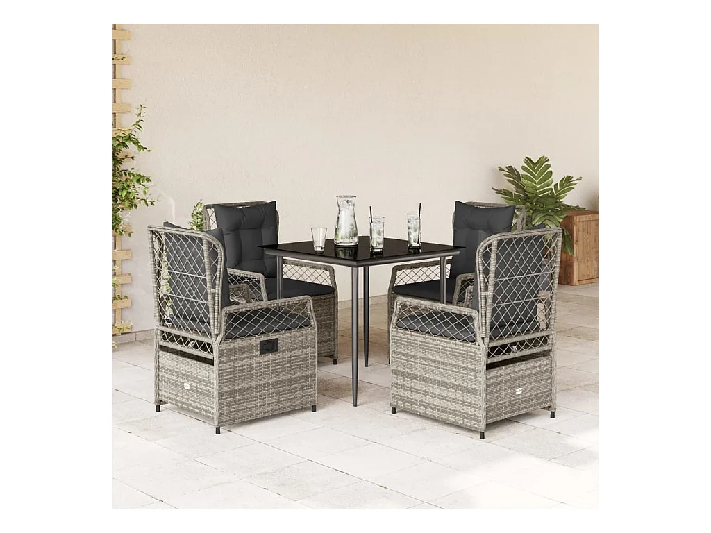 5-delige Tuinset poly rattan en gehard glas grijs NL510412