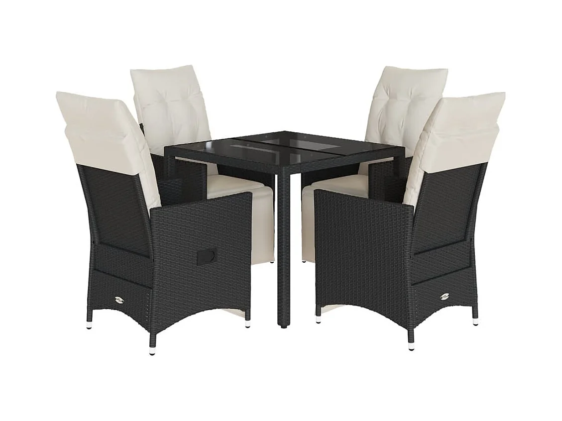 5-delige Tuinset met kussens poly rattan zwart